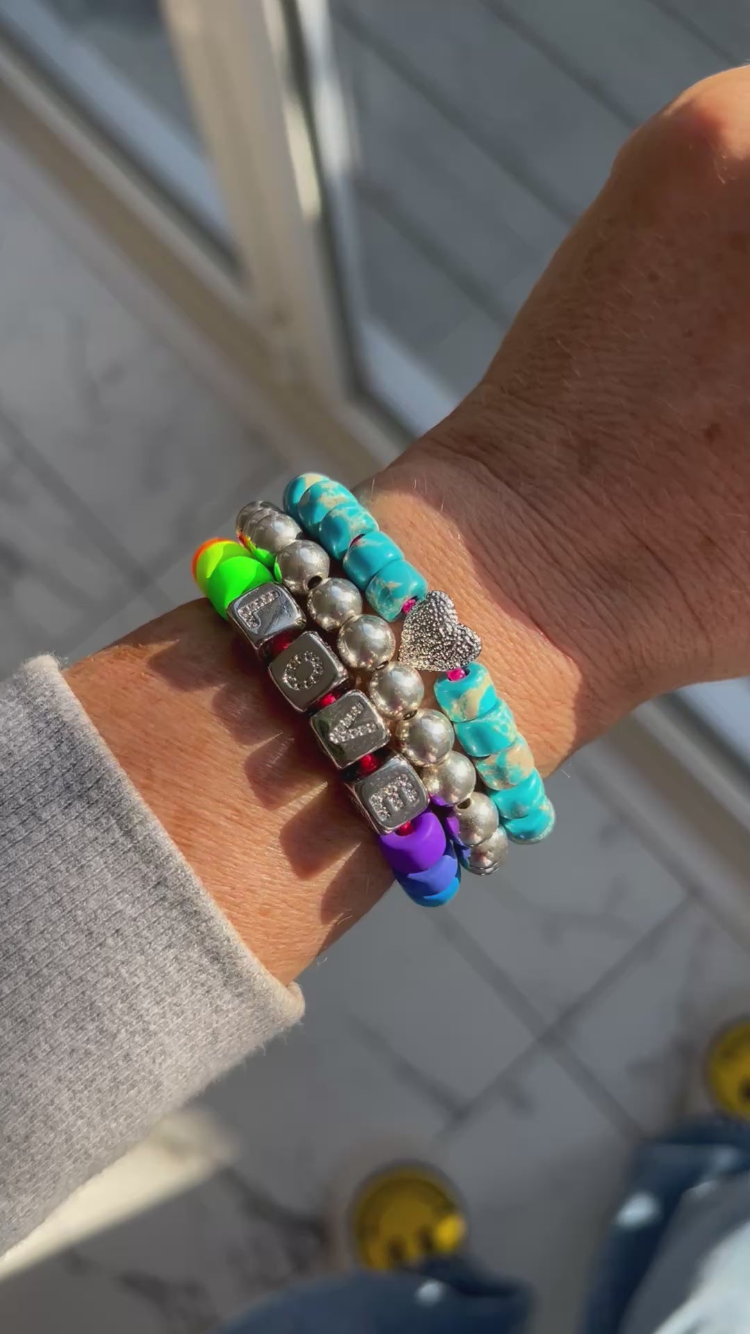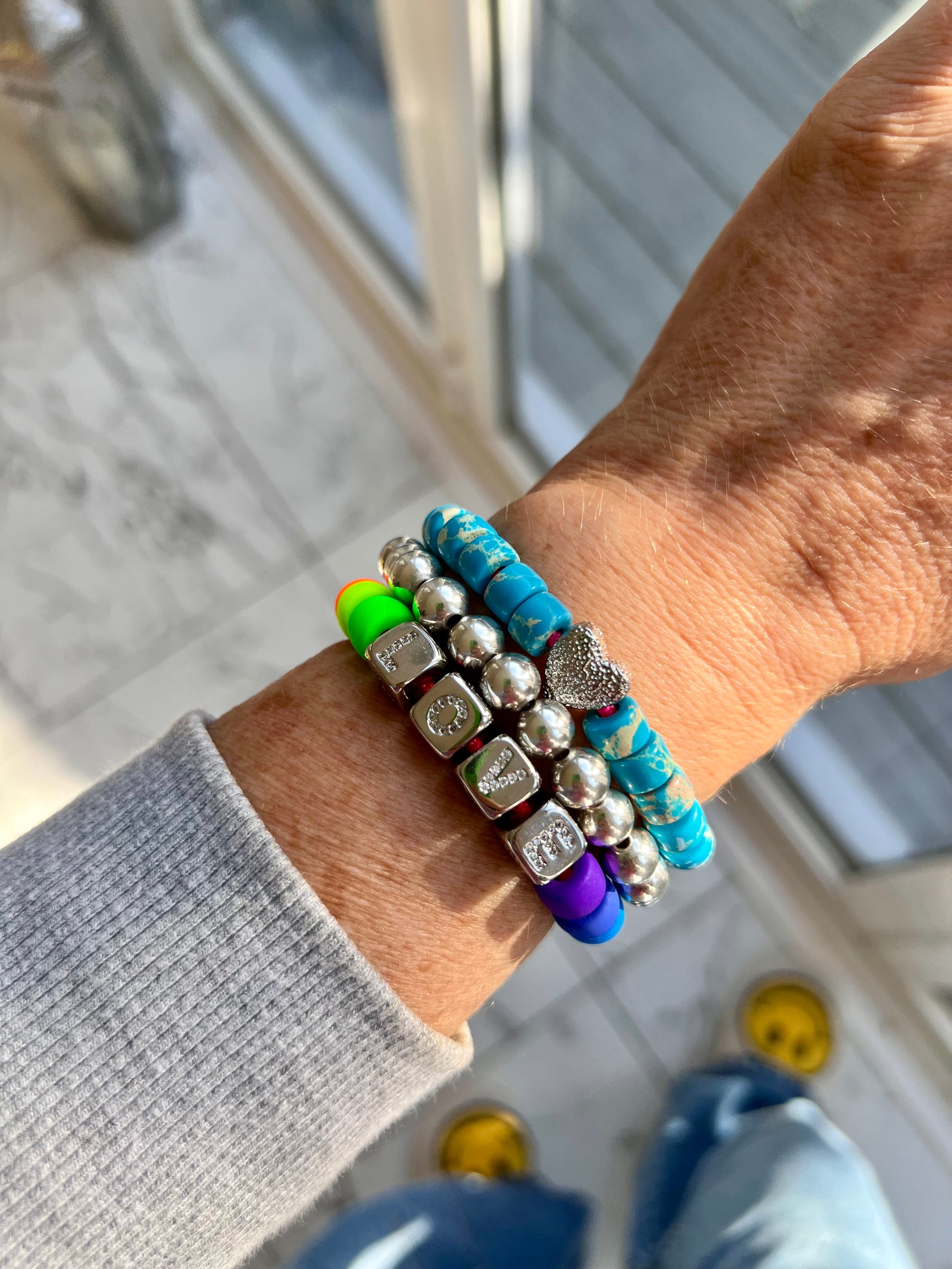Made from Blue Imperial Jasper Gemstone Beads, wit’s a Silver Textured Heart Bead taking centre stage 💖