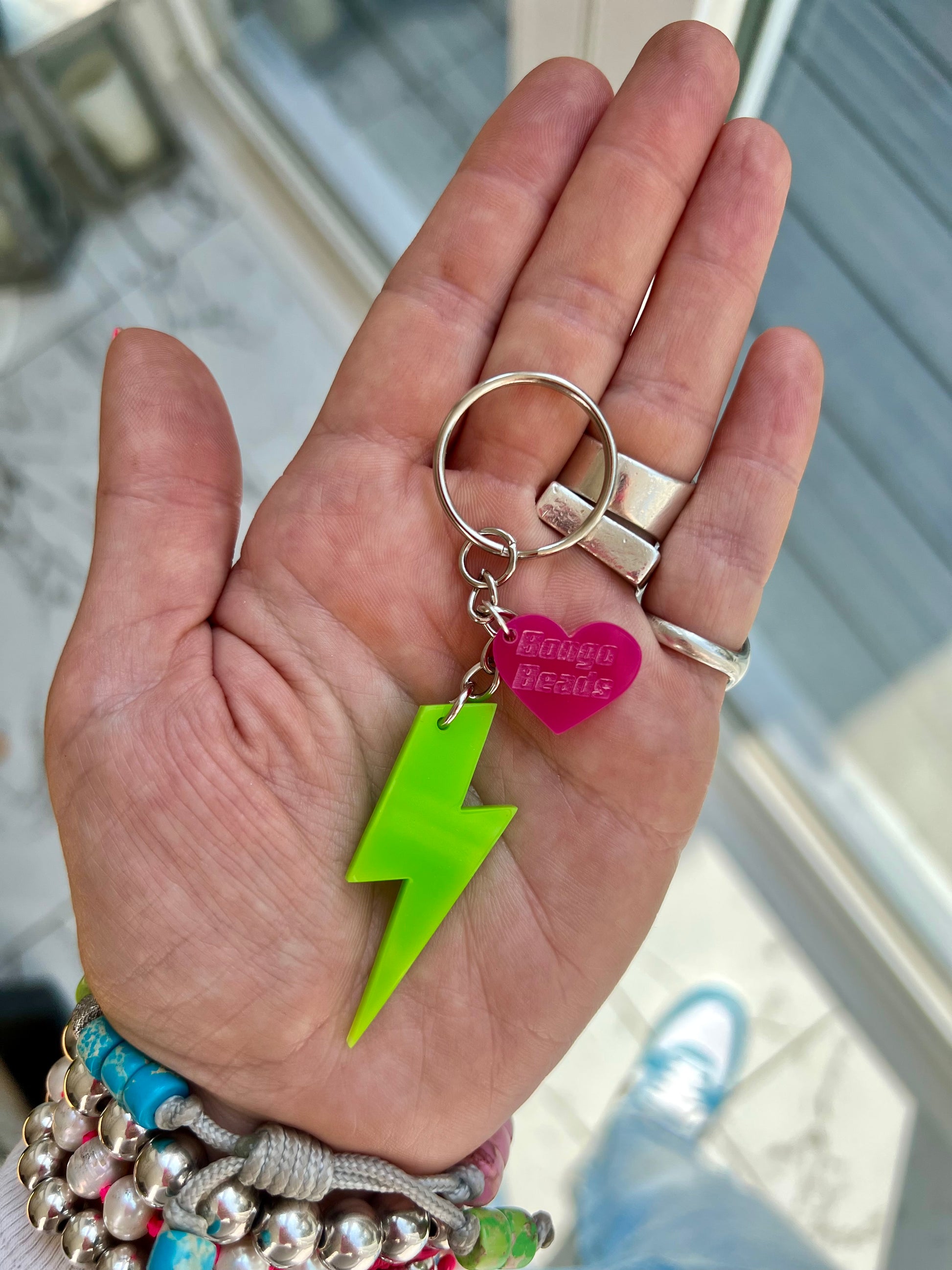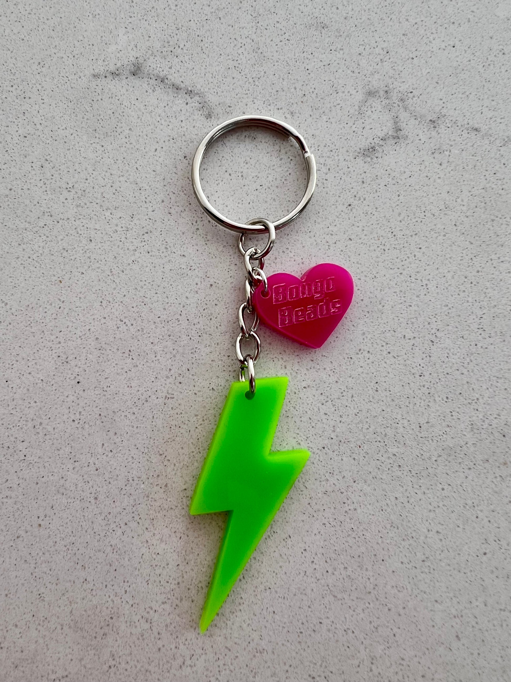 This listing is for 1 x Neon Green Bolt Charm/Key Ring—because a little charm goes a long way!