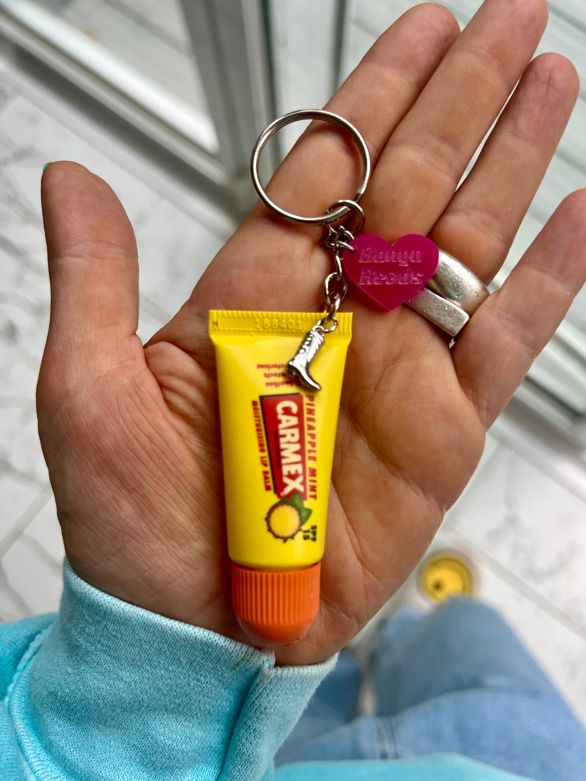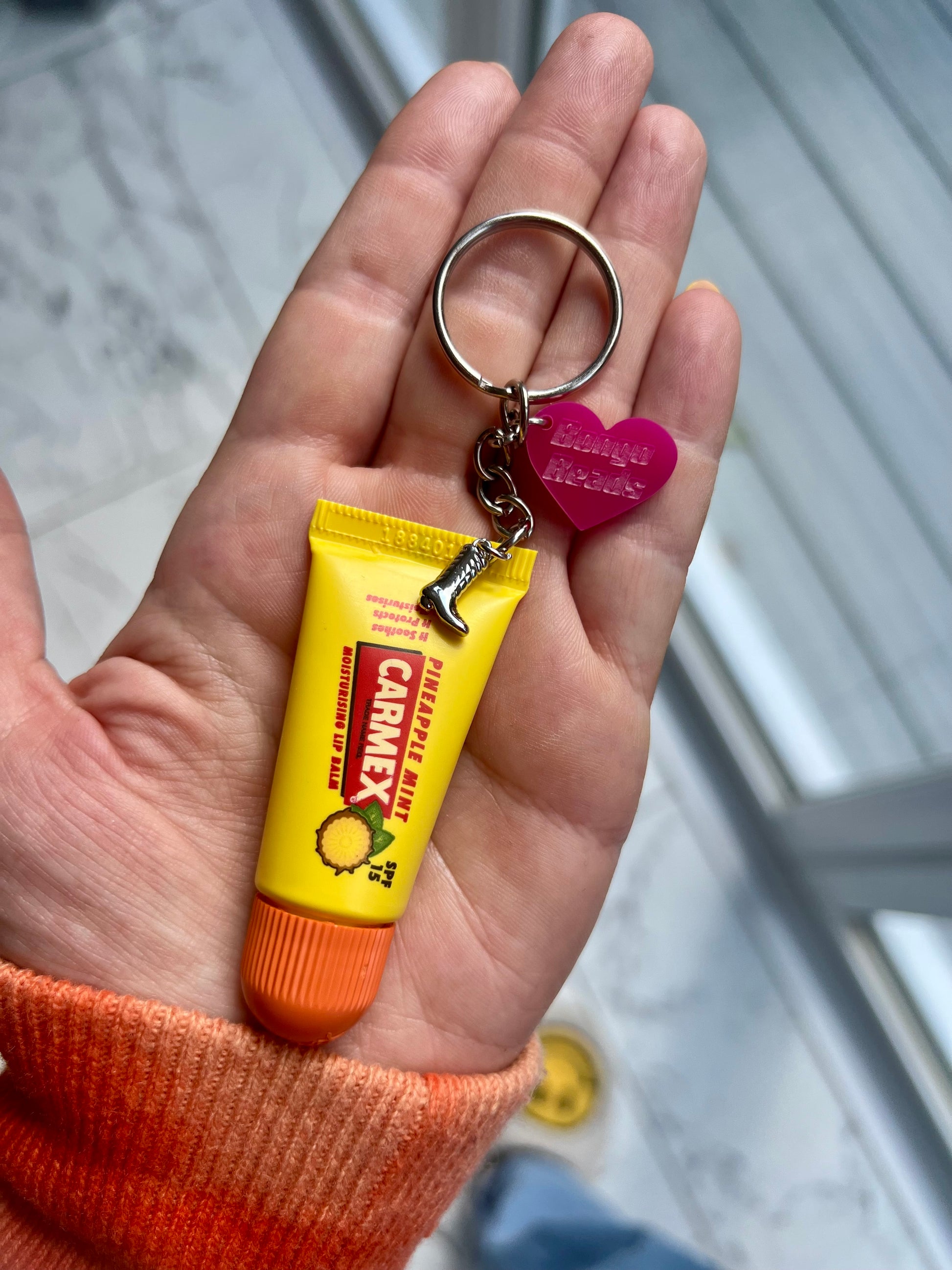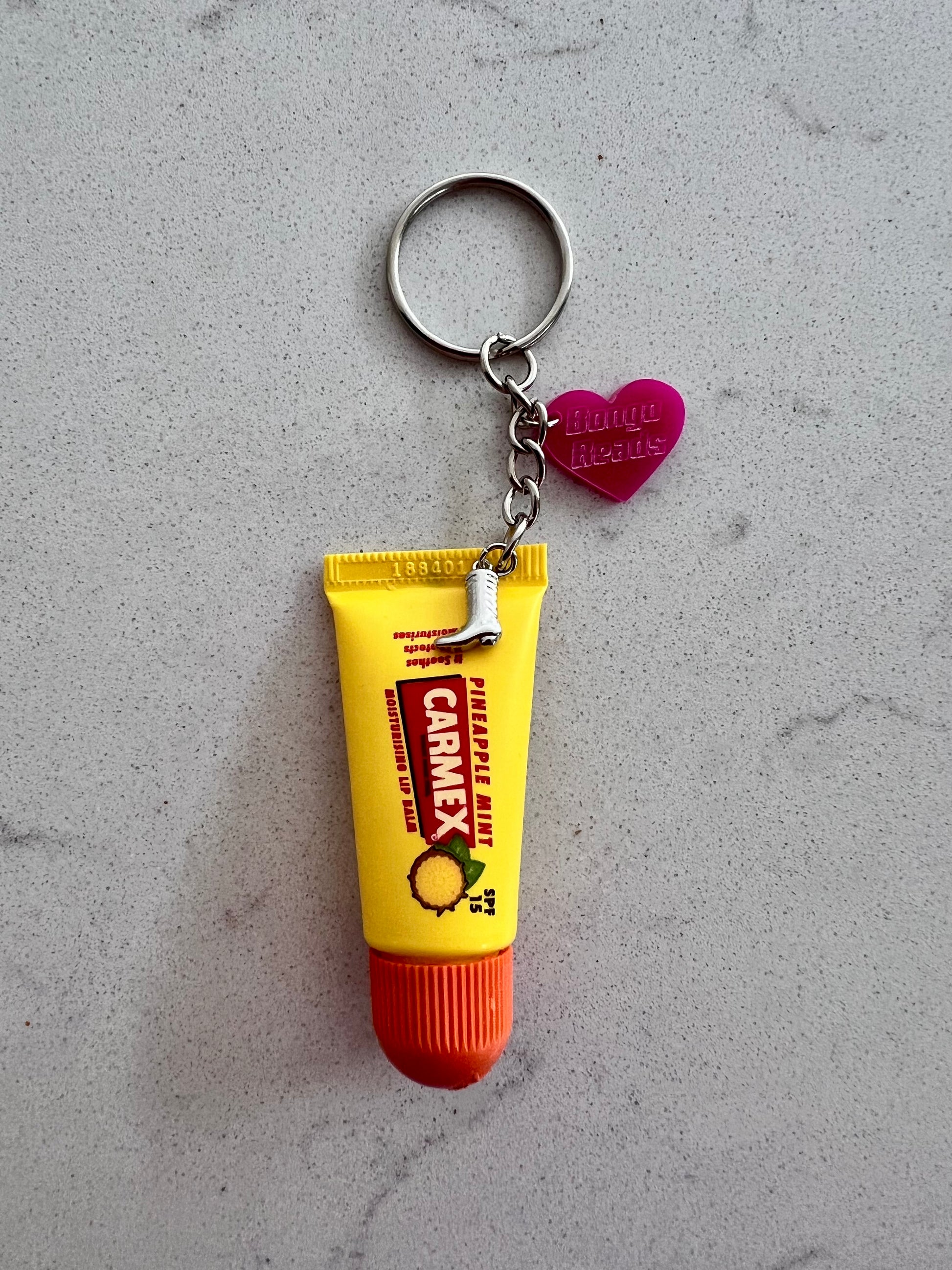 This listing is for 1 x Pineapple Carmex Lip Balm Key Ring—because fruity fun never goes out of season.