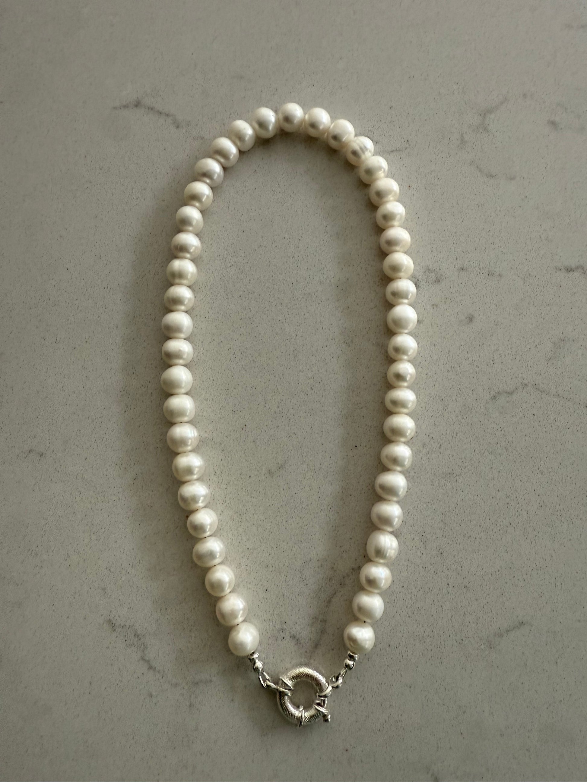 Chunky pearl necklace with Sterling Silver Jumbo Bolt Clasp ✨