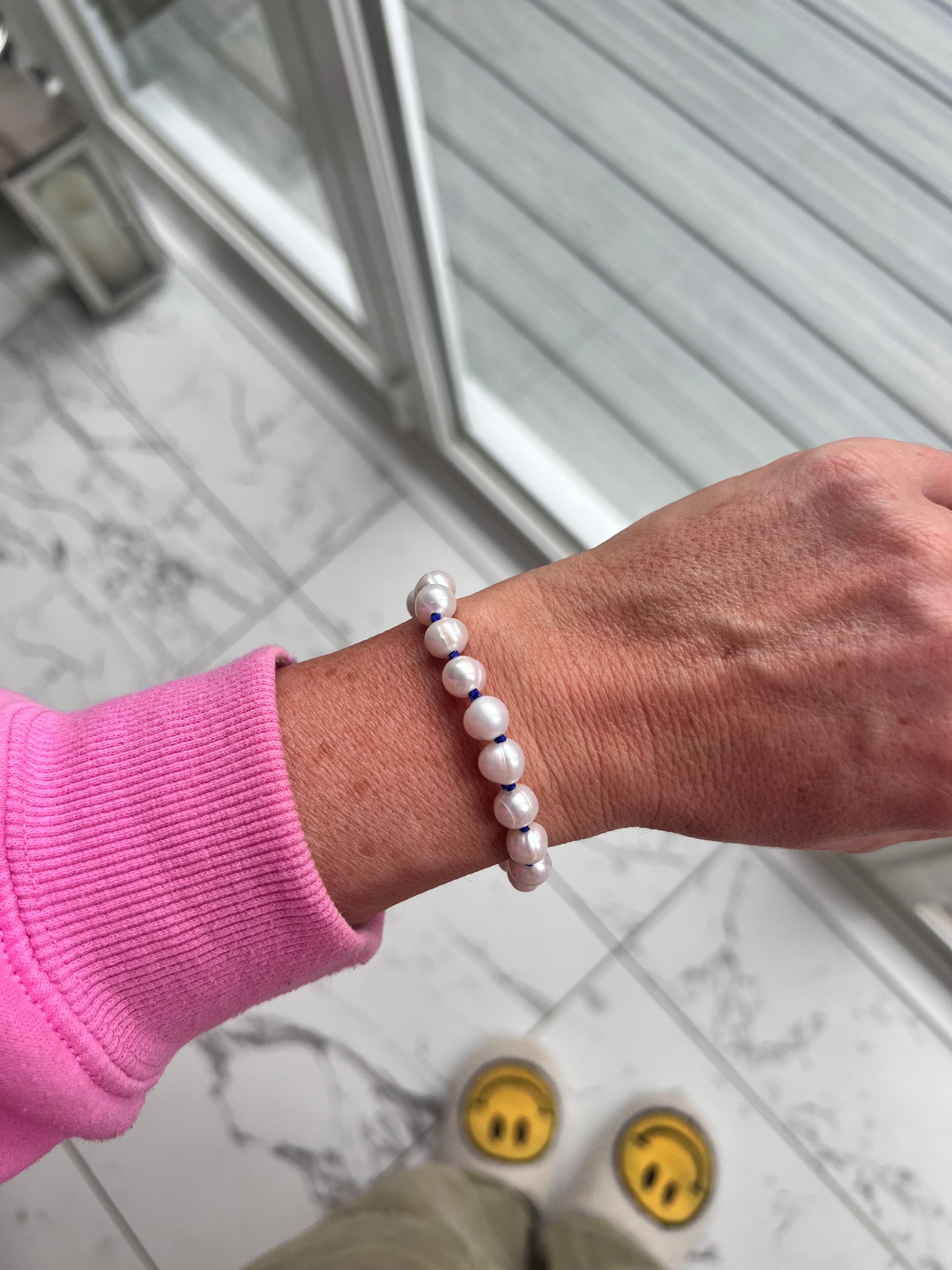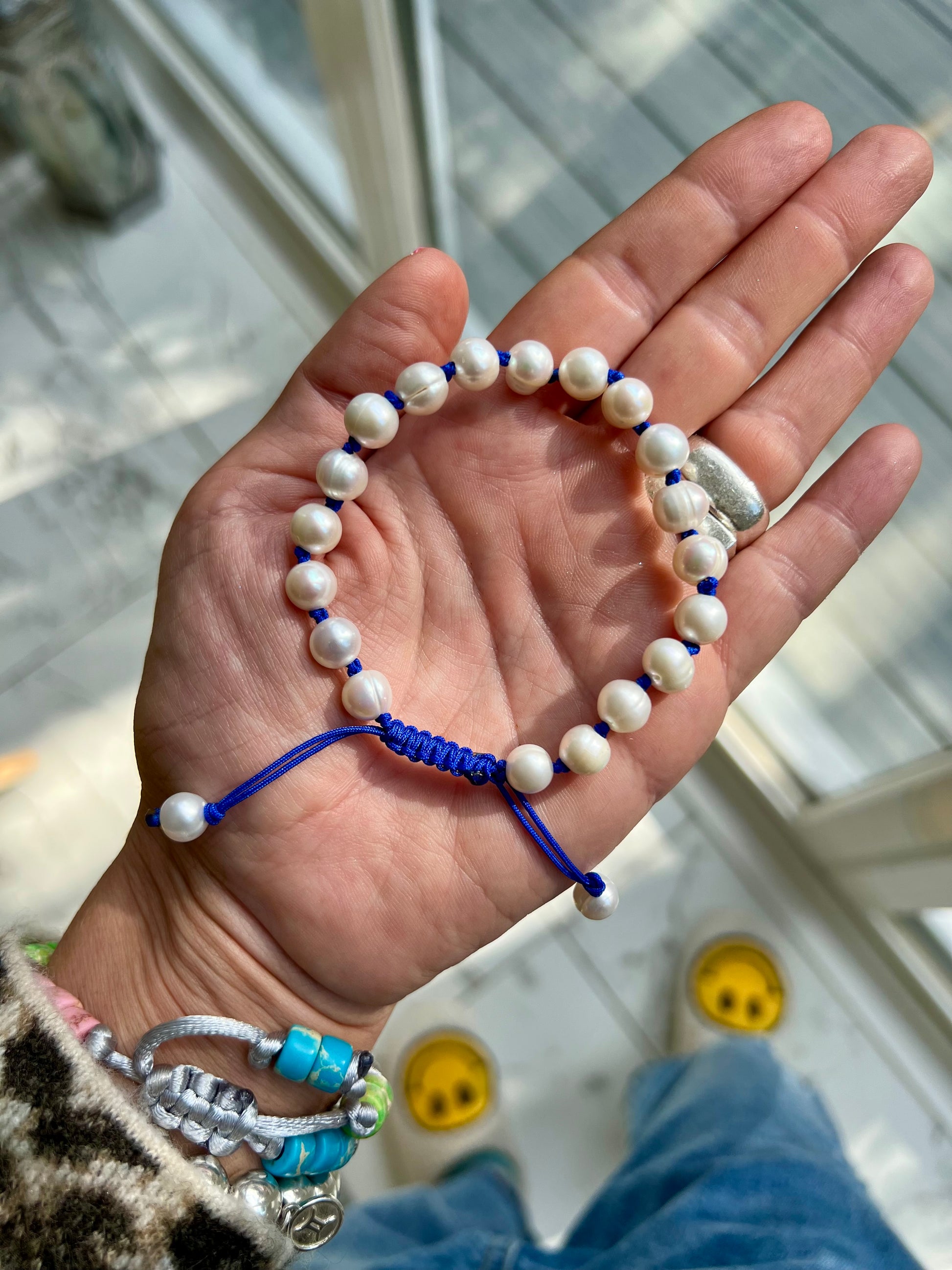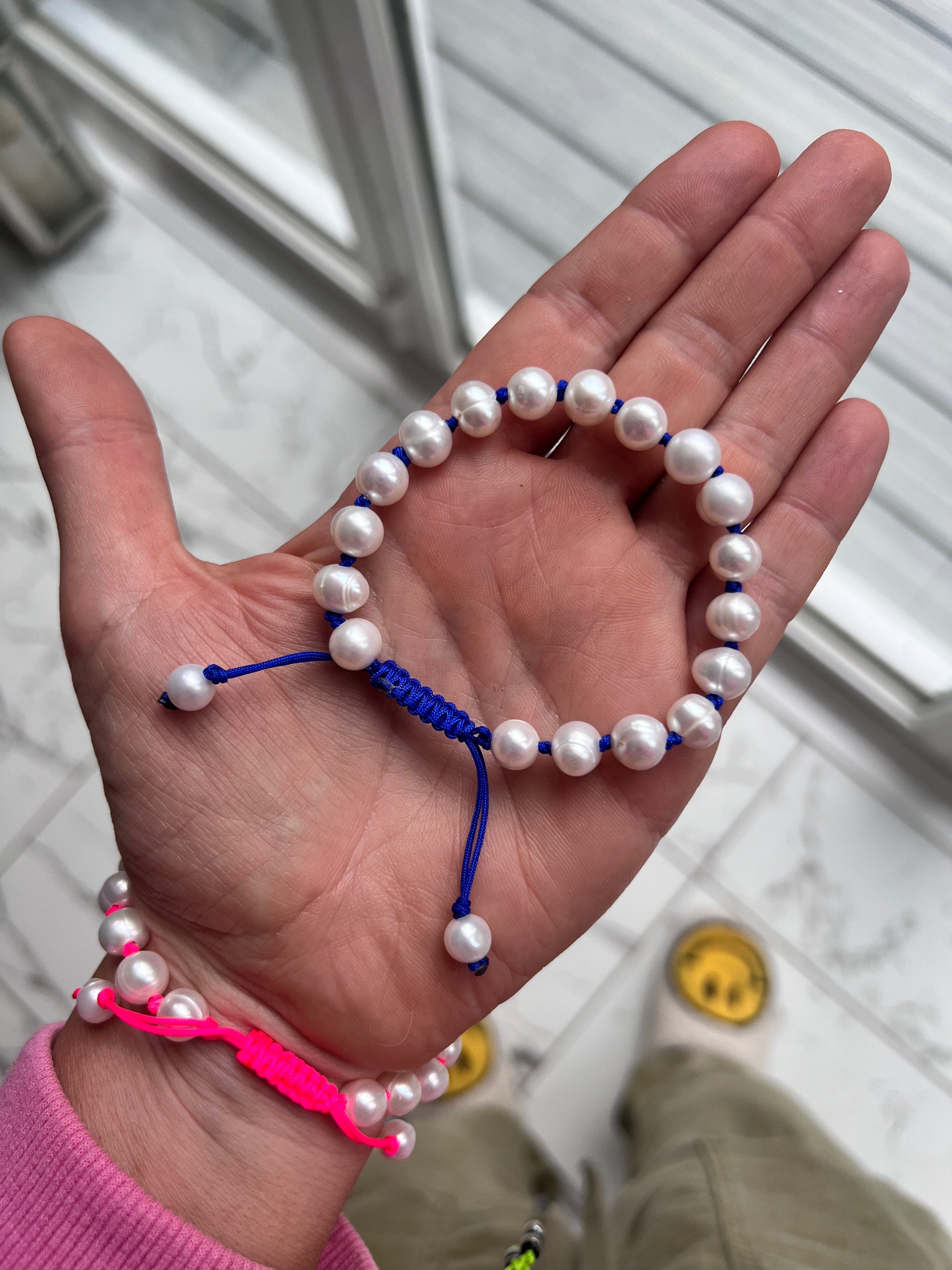 Made with beautiful Freshwater Pearls and hand knotted onto fine neon cord - this bracelet is a classic with a modern twist! 🌈