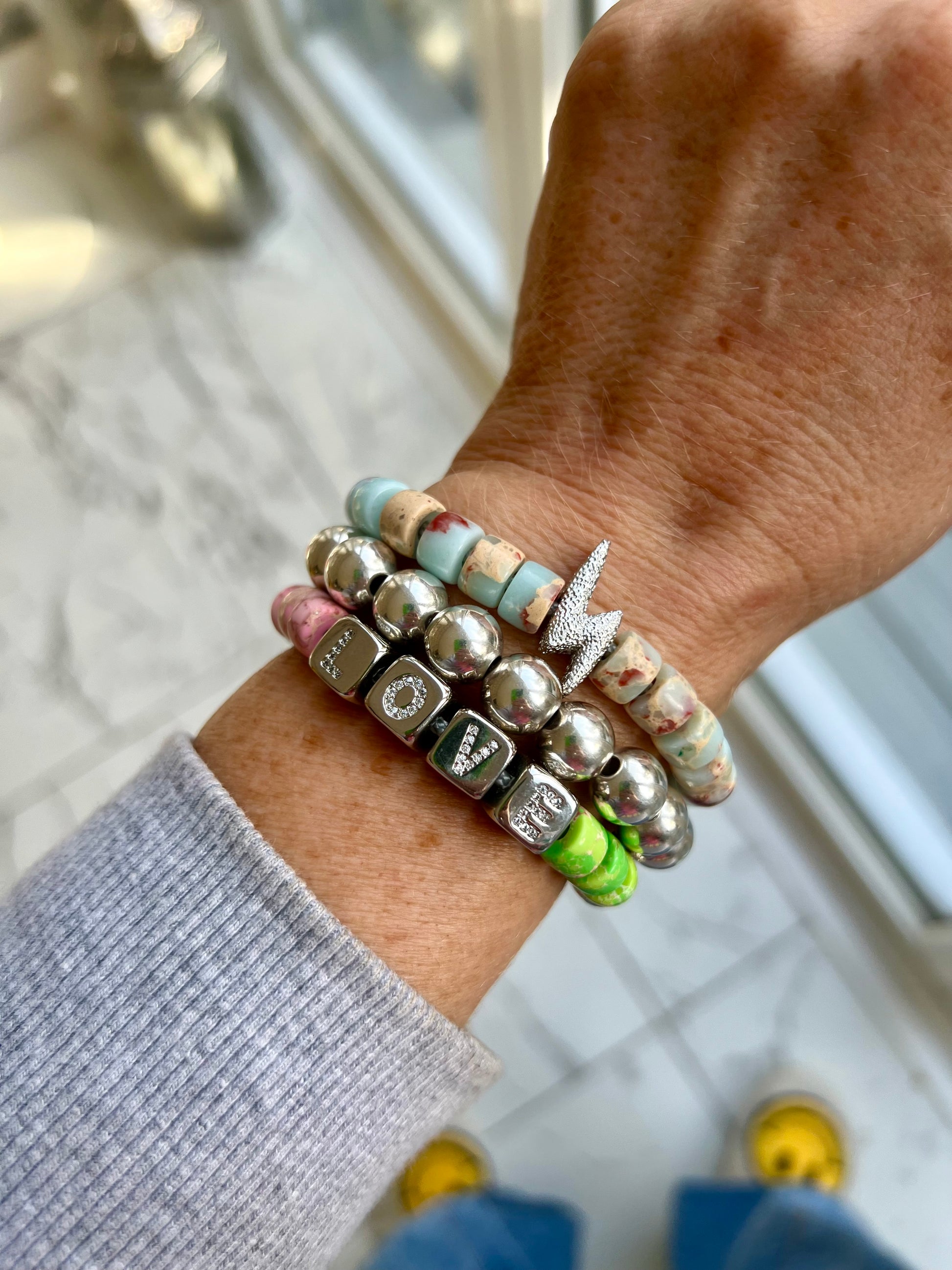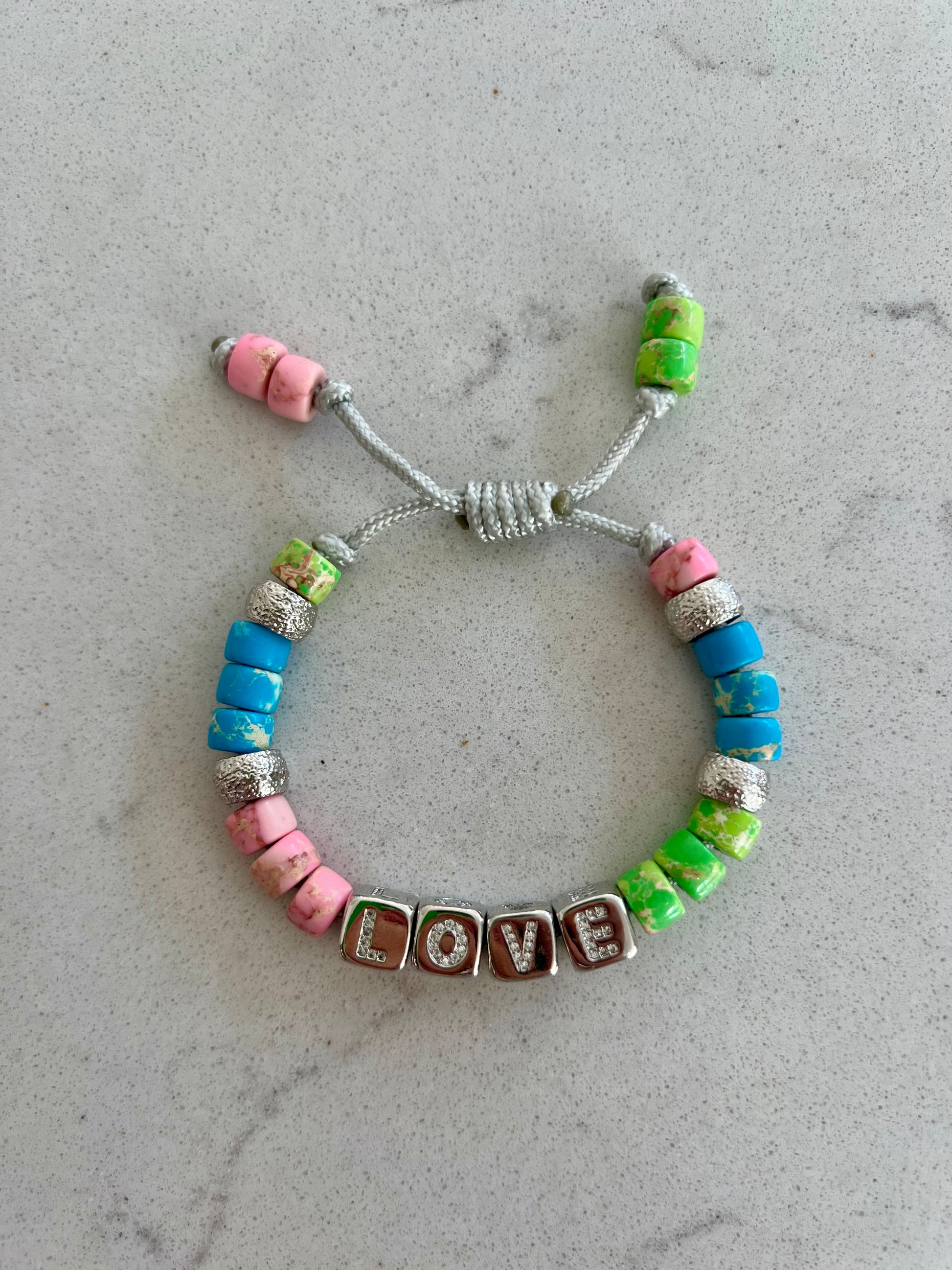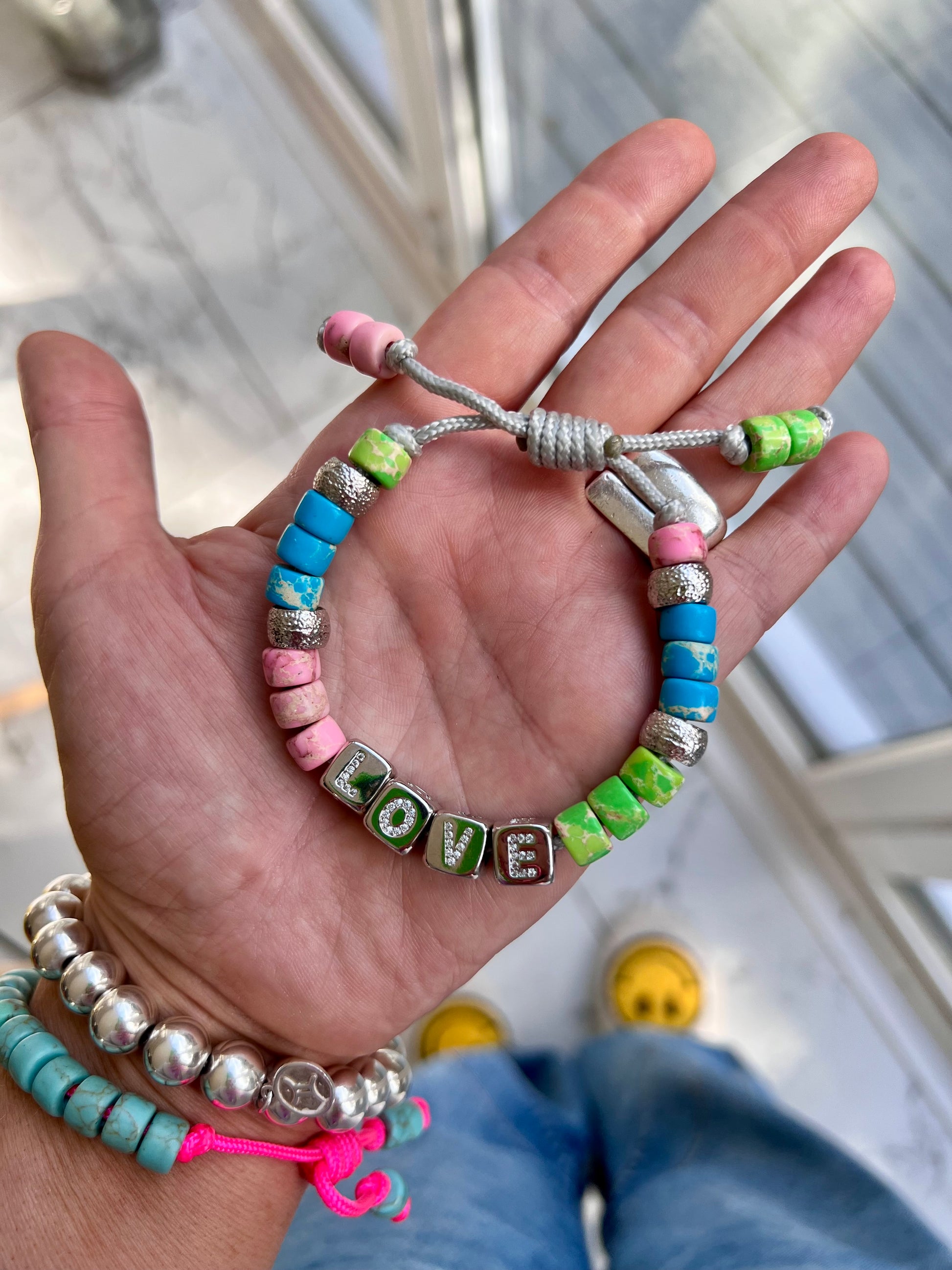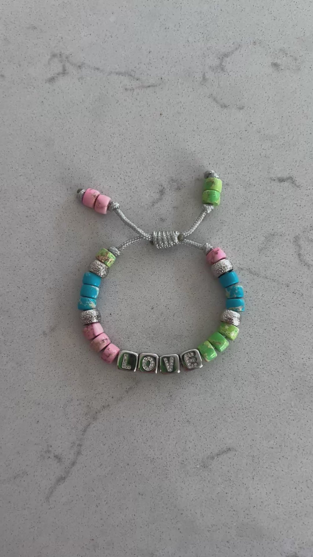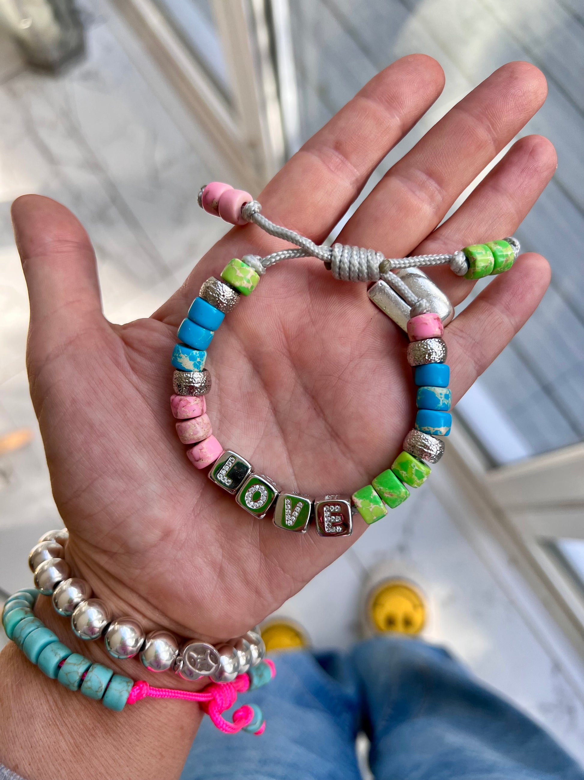 Made from Imperial Jasper Gemstone Forte Beads and 4 Pavé silver plated letters spelling the word LOVE ♥️