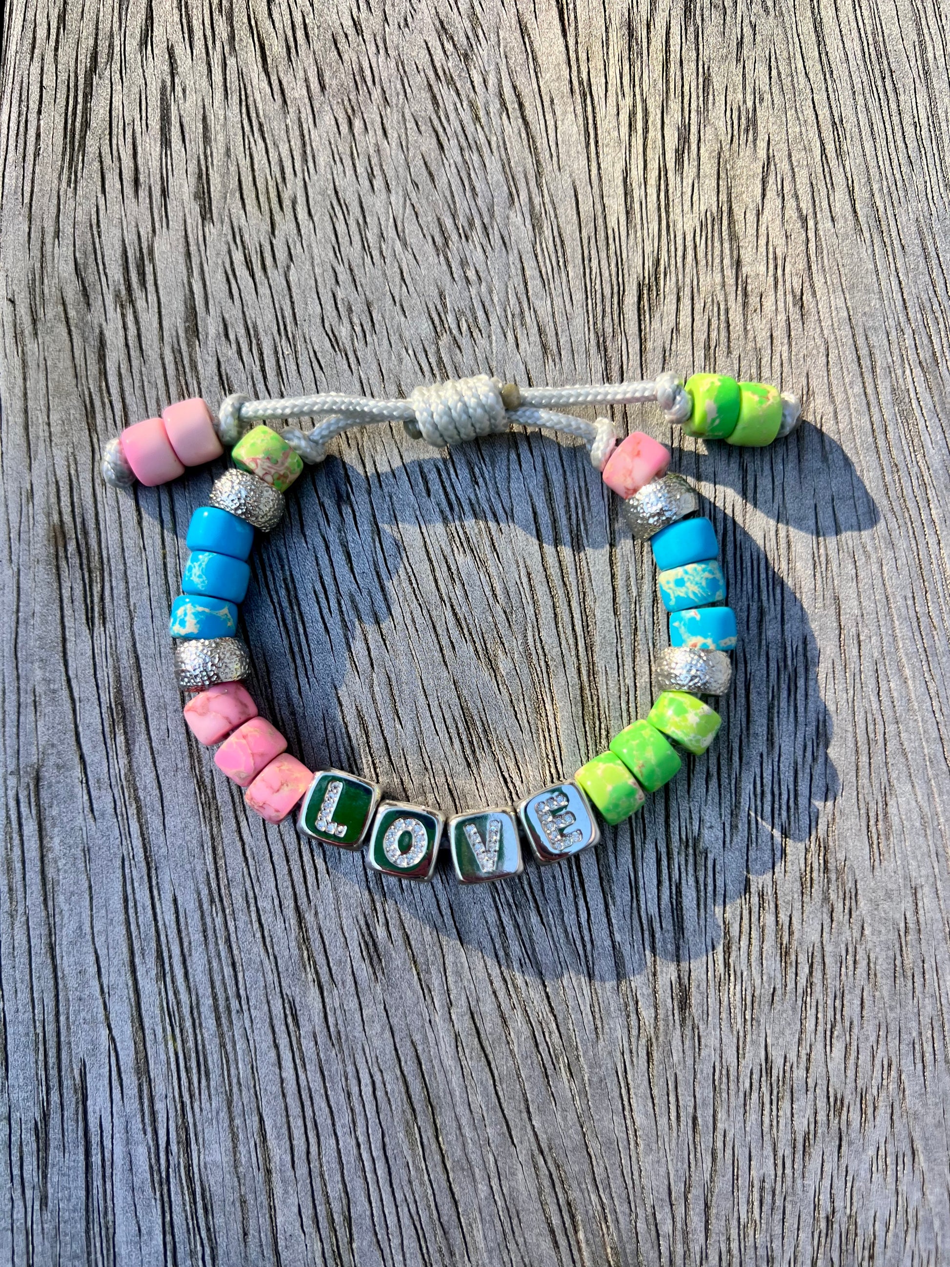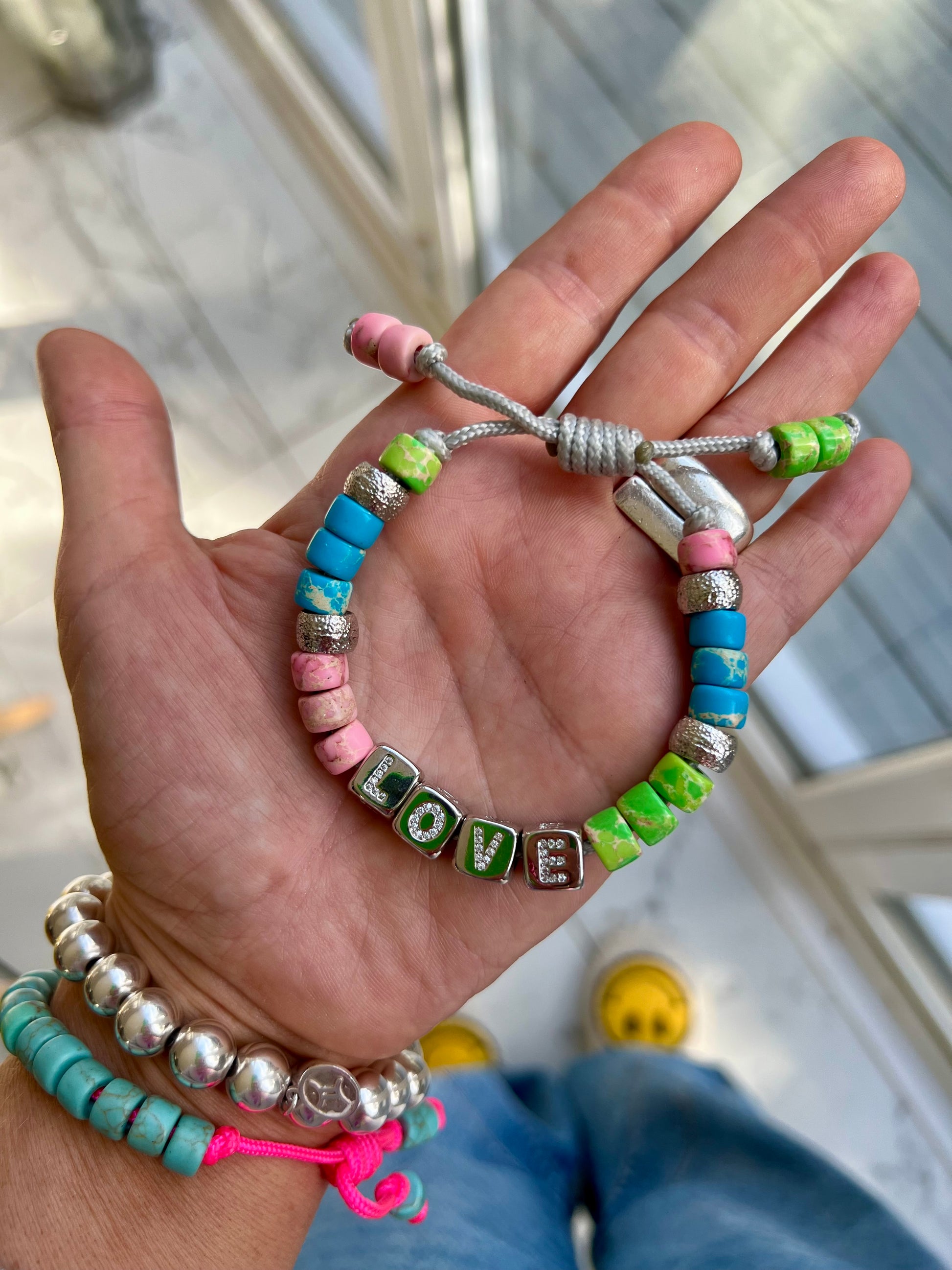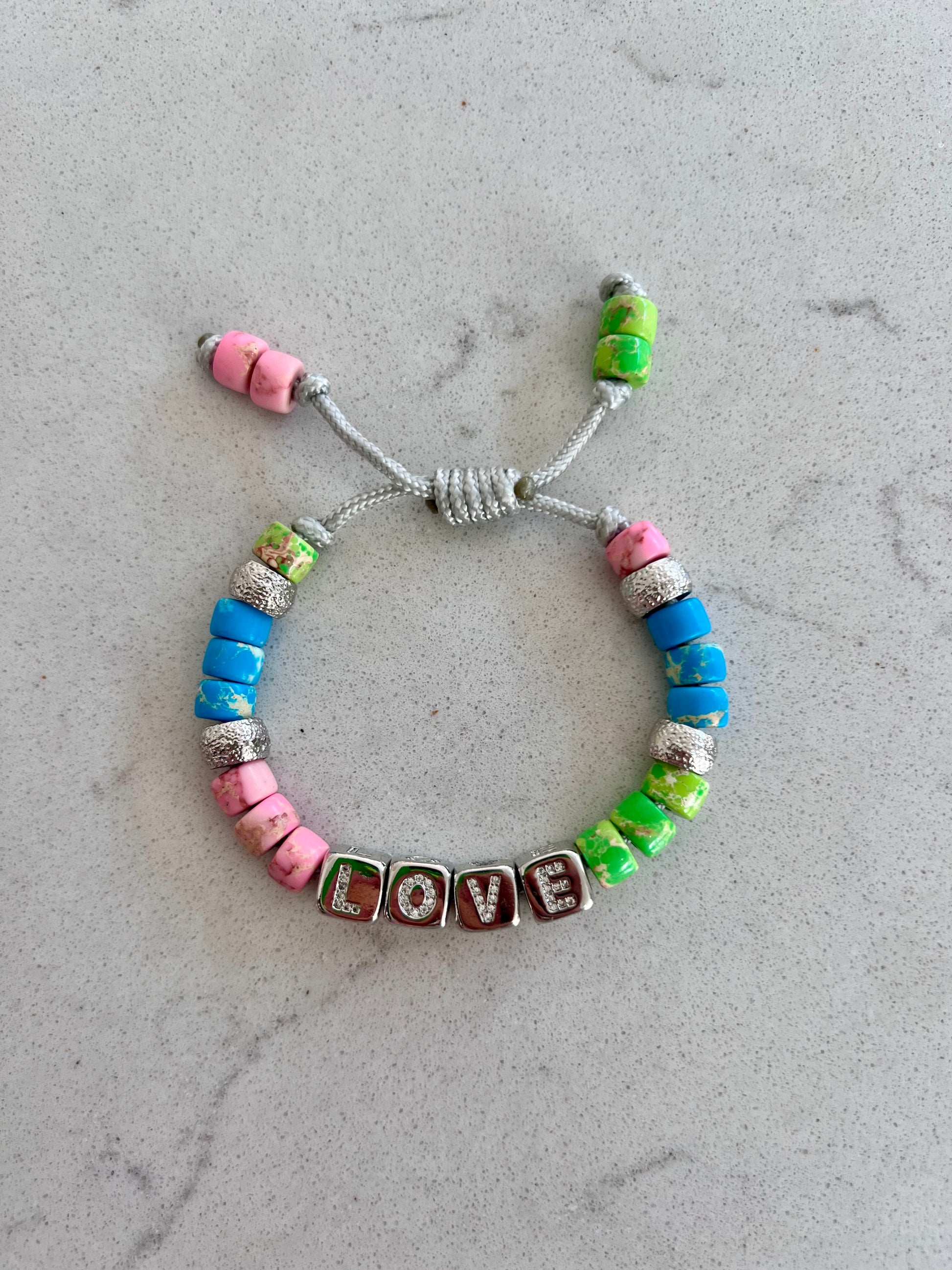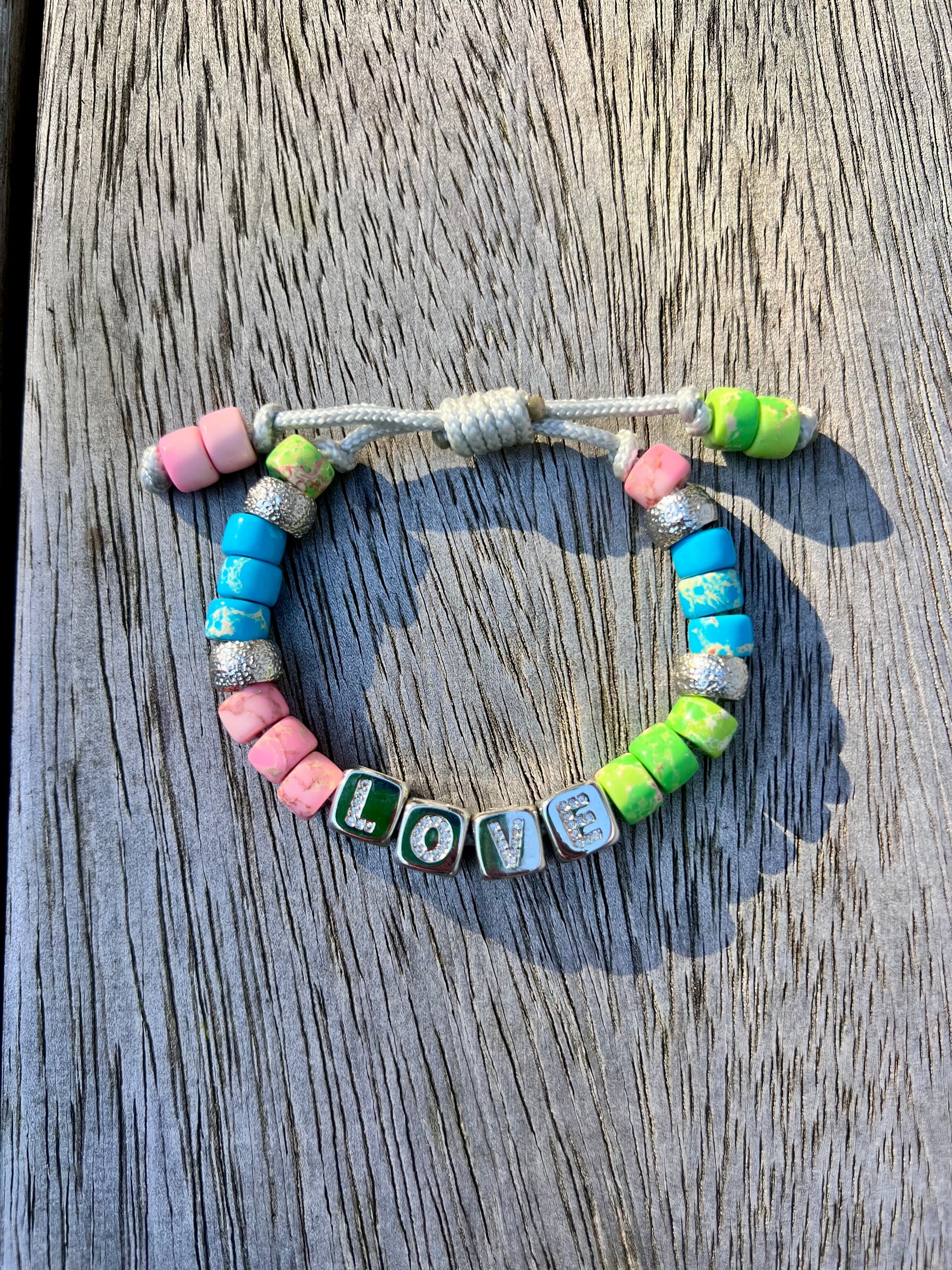 Made from Imperial Jasper Gemstone Forte Beads and 4 Pavé silver plated letters spelling the word LOVE ♥️