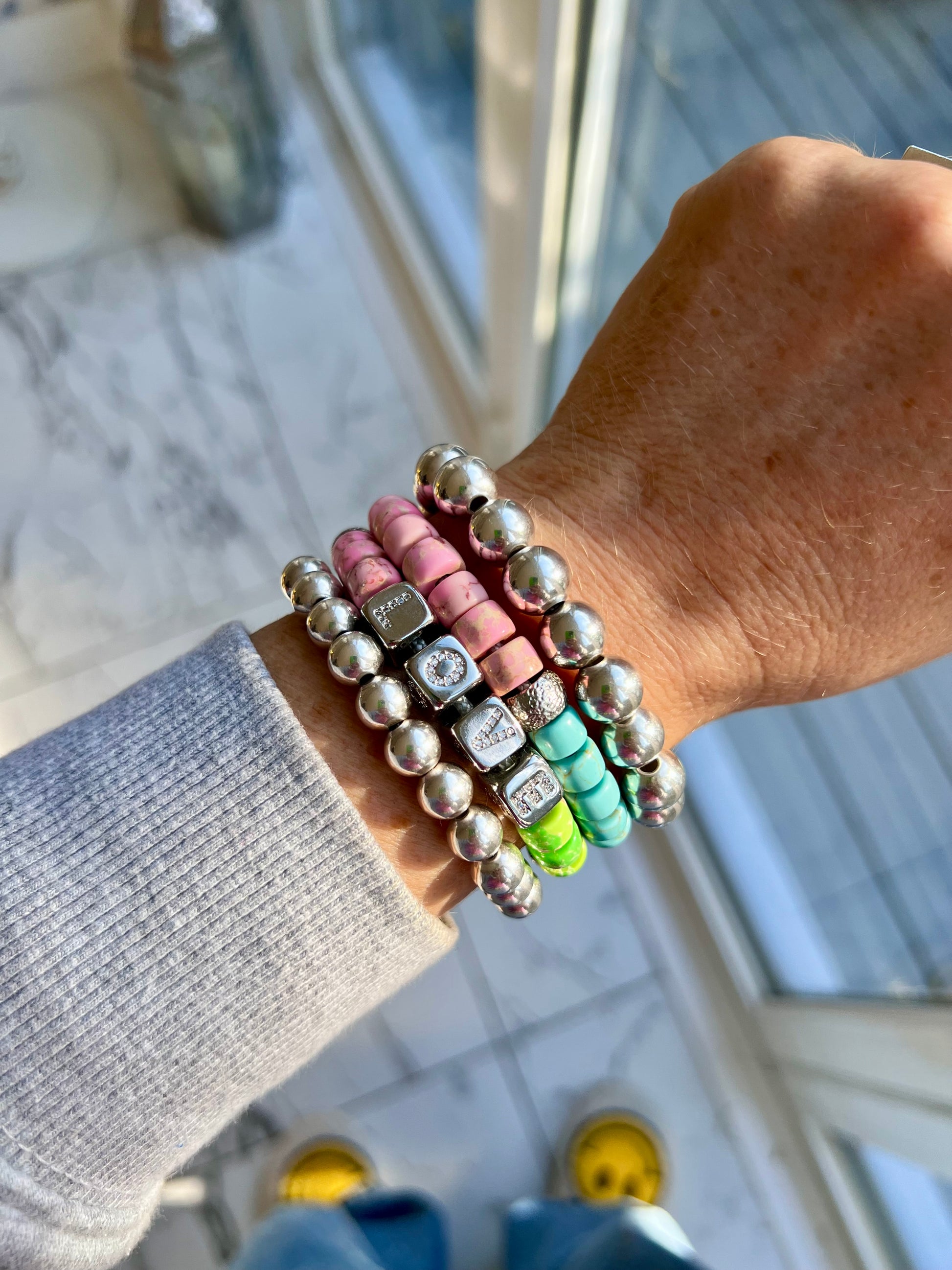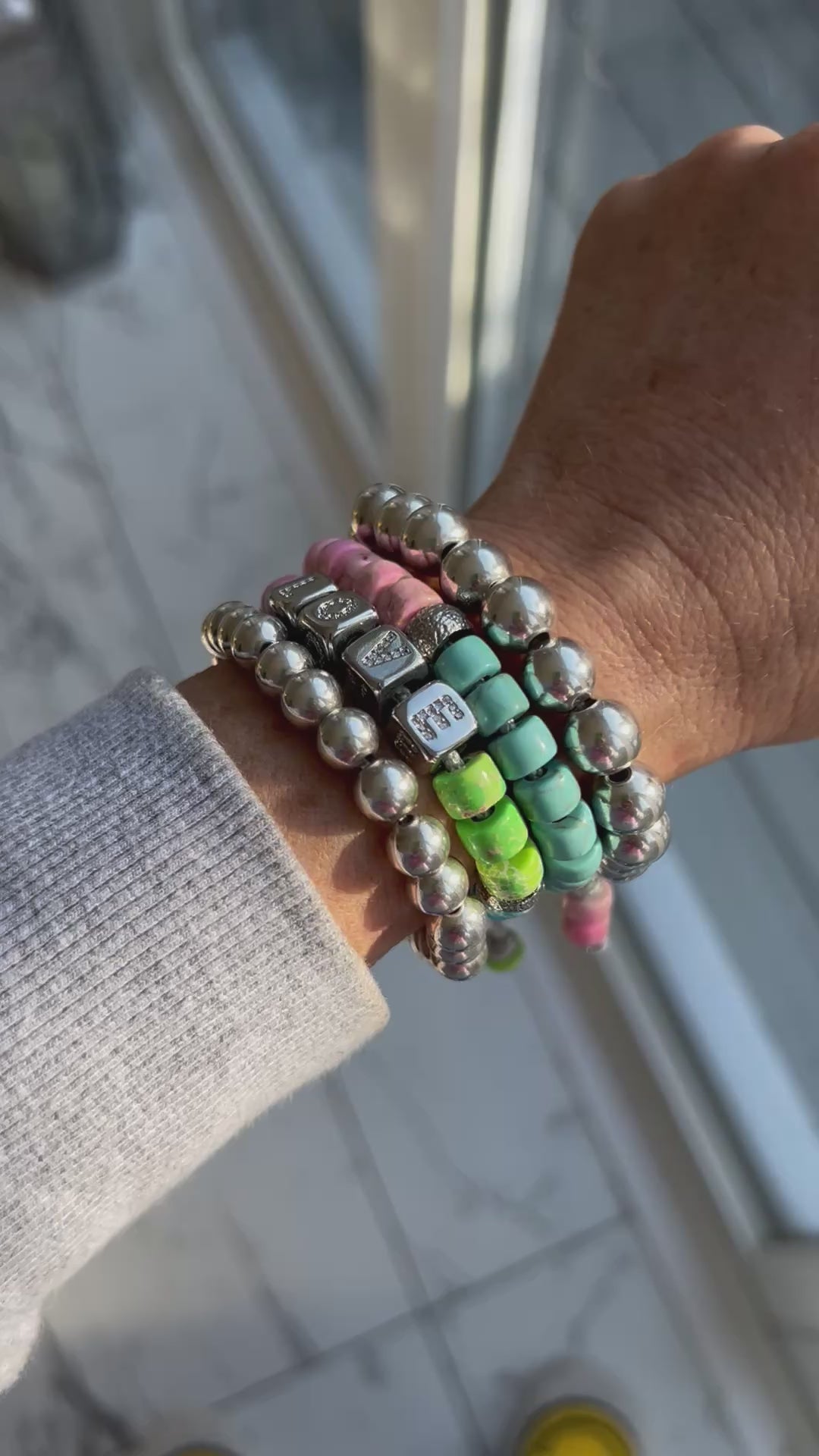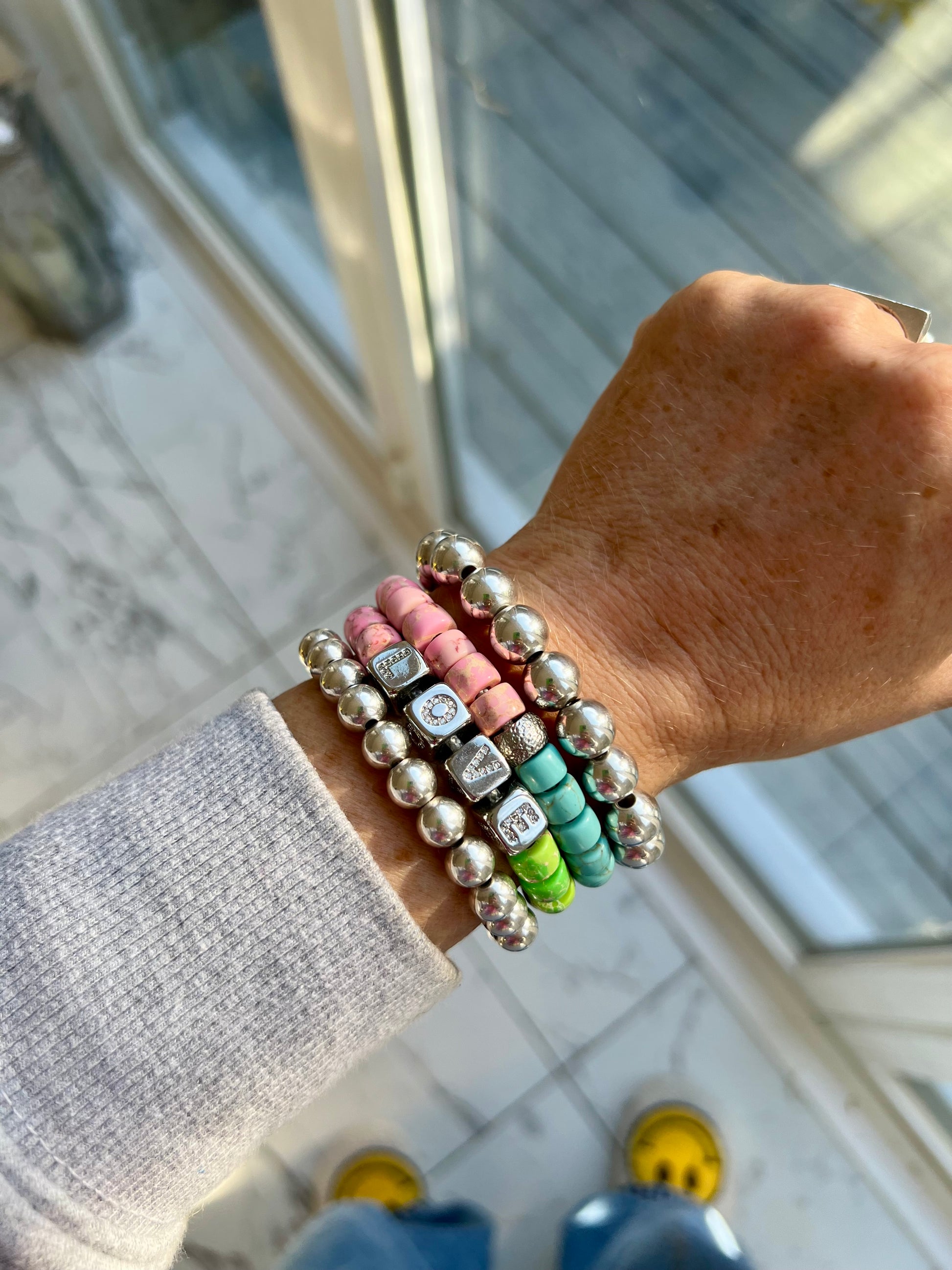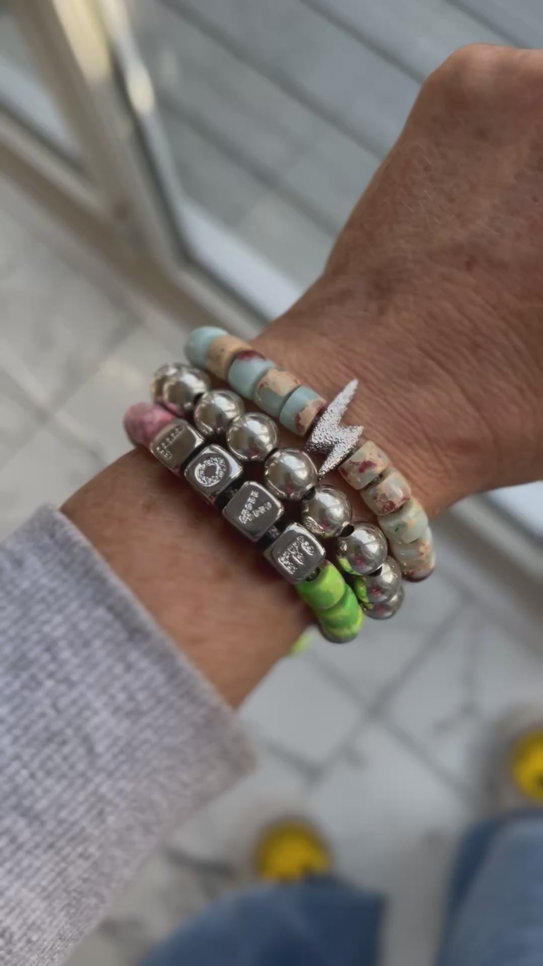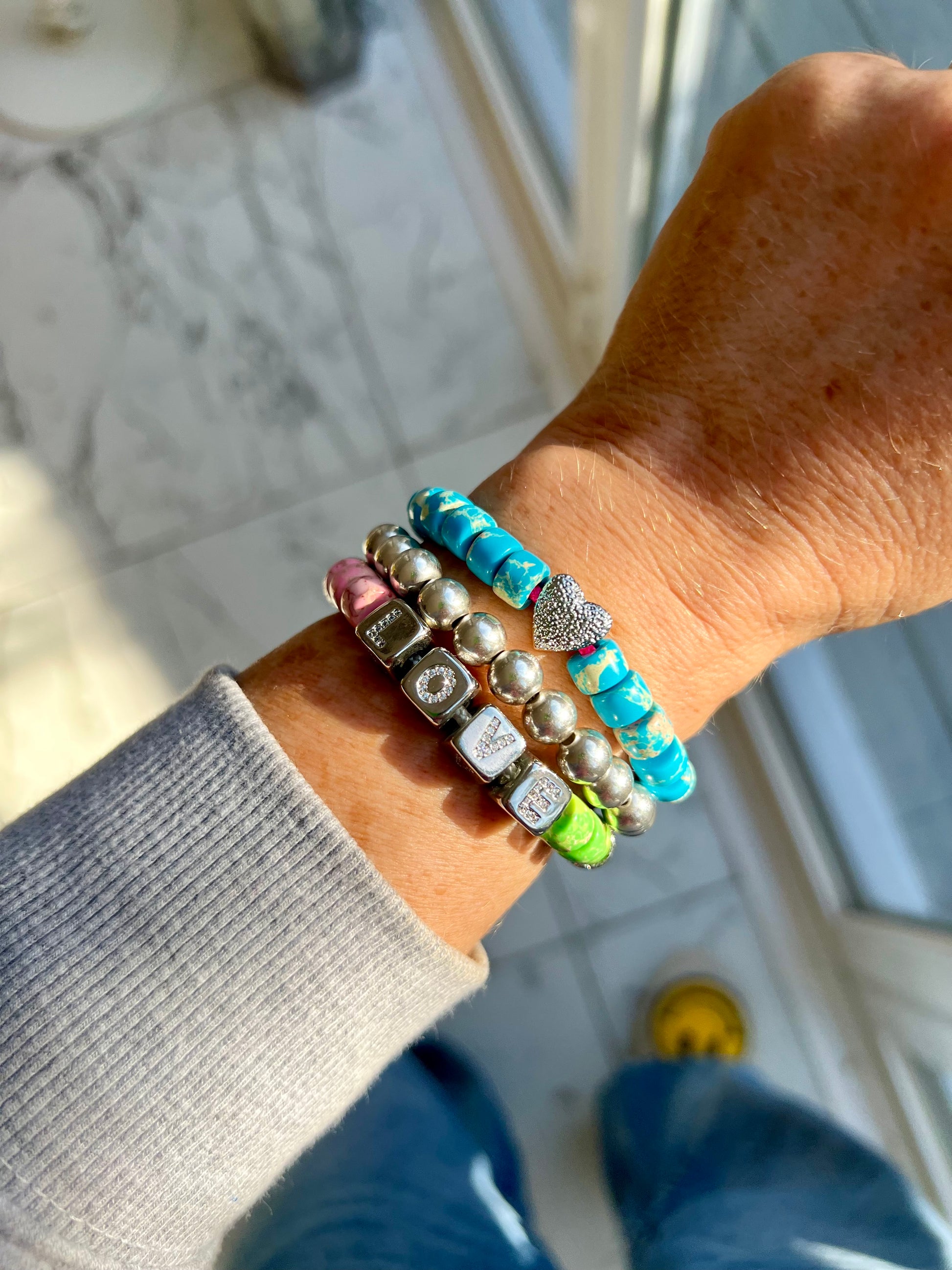 Made from Imperial Jasper Gemstone Forte Beads and 4 Pavé silver plated letters spelling the word LOVE ♥️