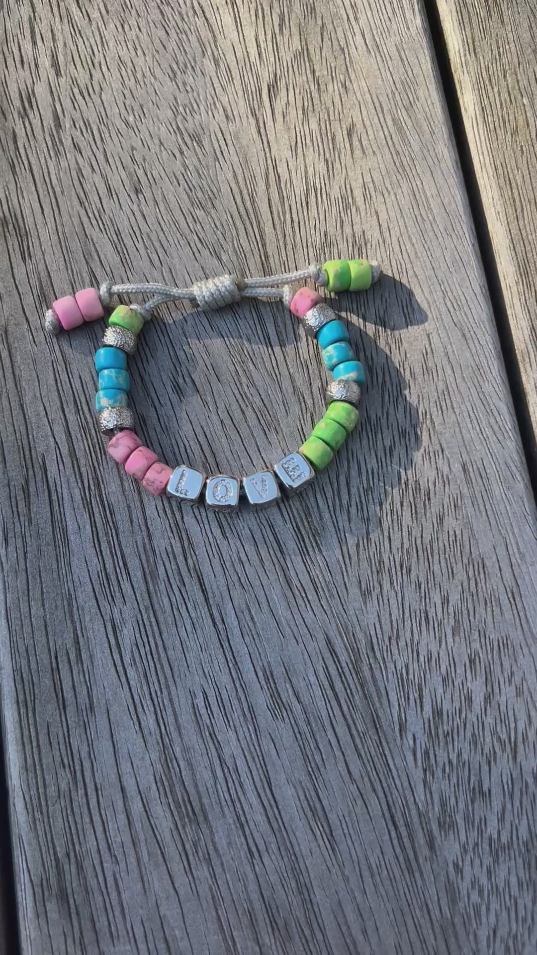 Threaded onto a beautiful silver nylon cord and finished with a twisted sliding knot, making this bracelet adjustable & easy to slide over your wrist! 🤜🏻