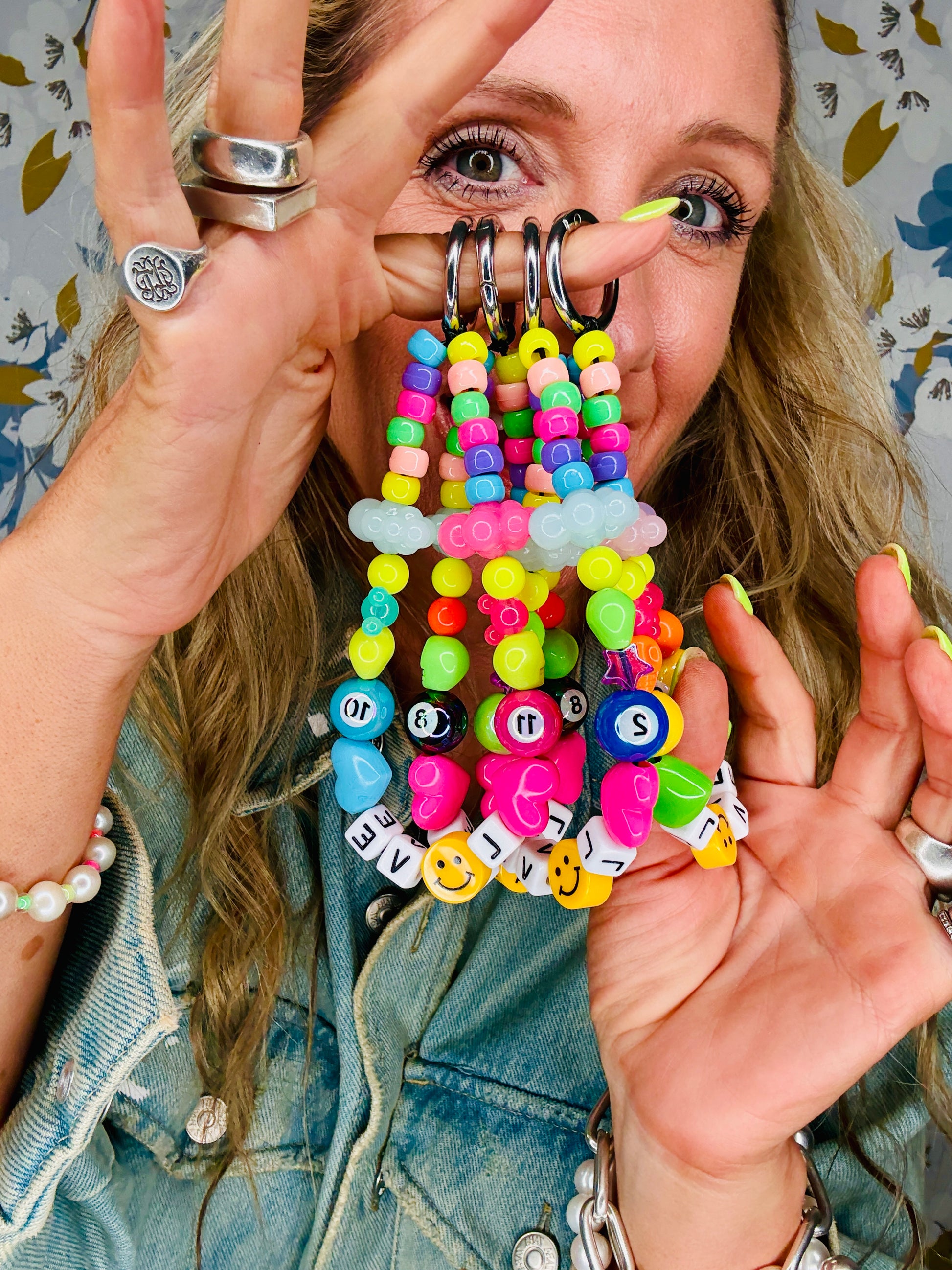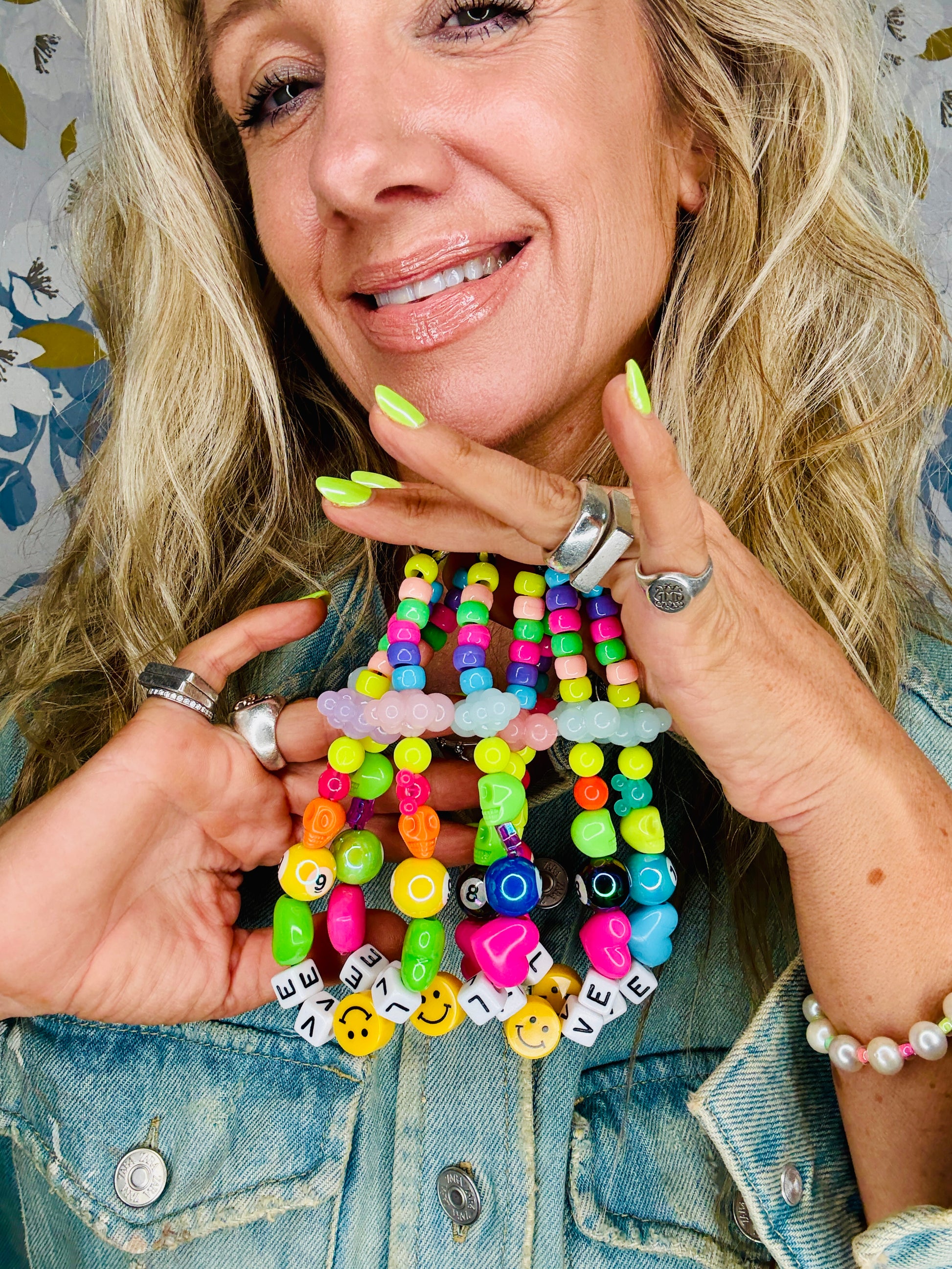 π Burst of colour, dose of joy β strung on neon rainbow cord for an instant mood boost and a splash of personality.