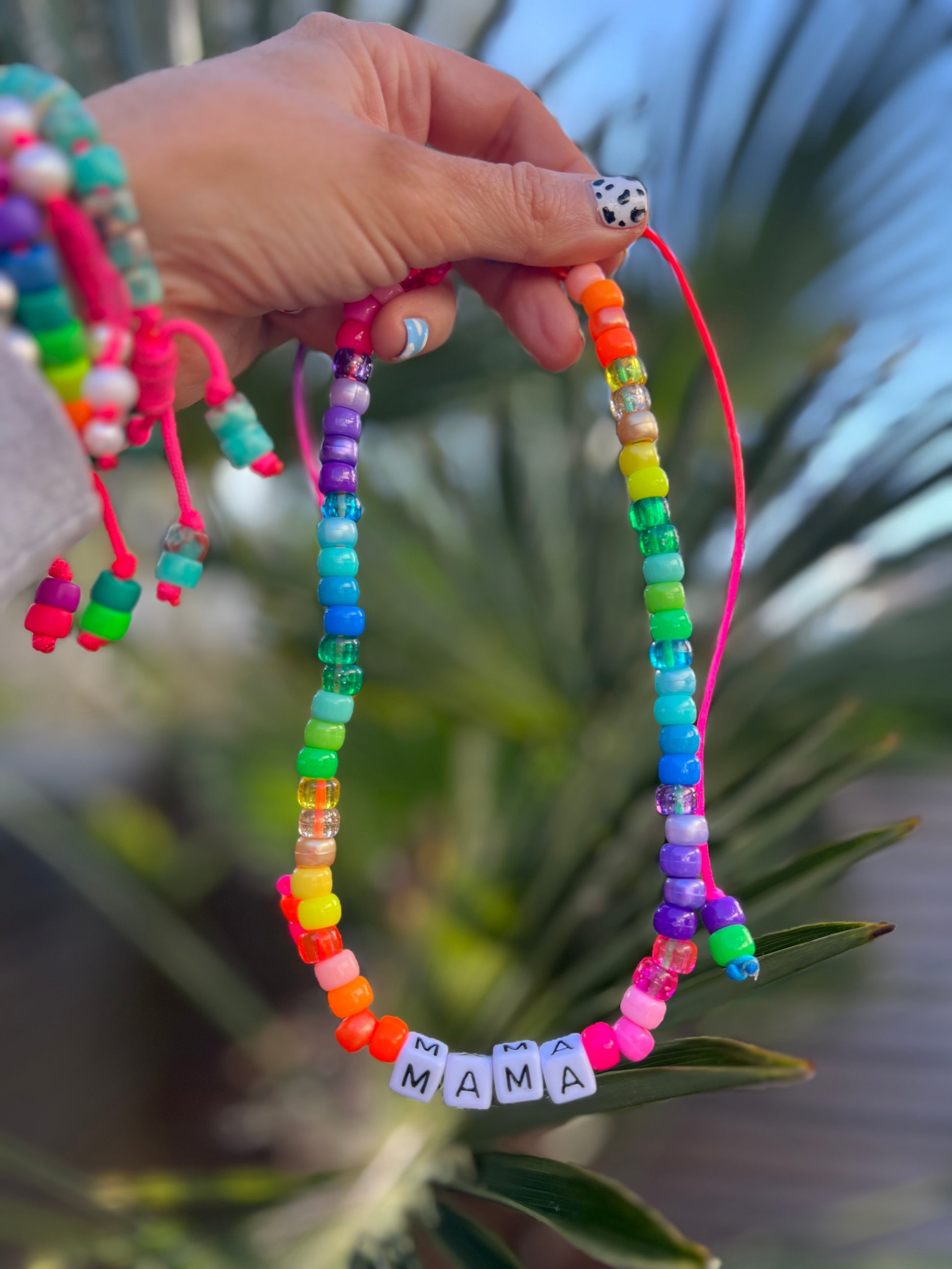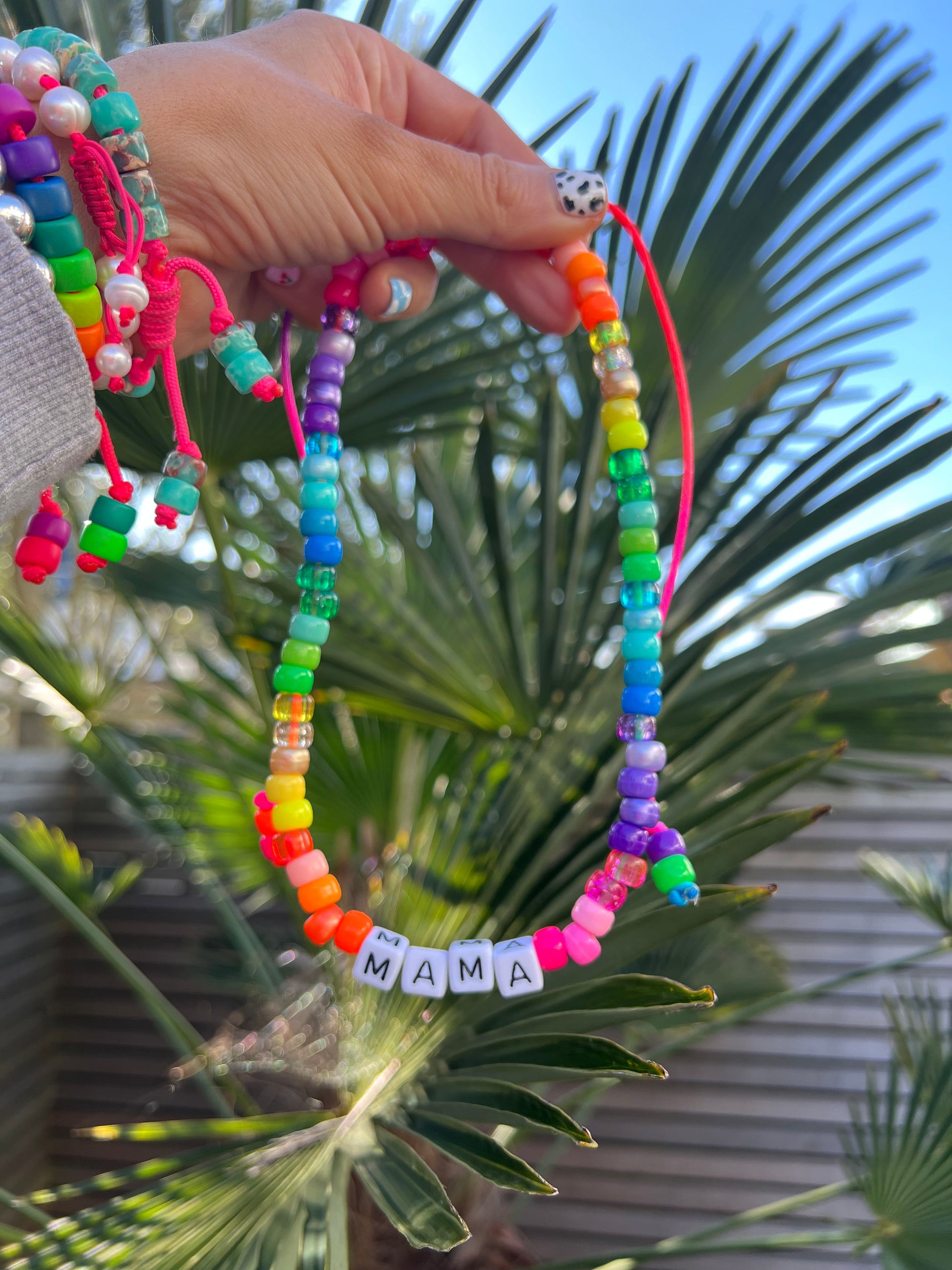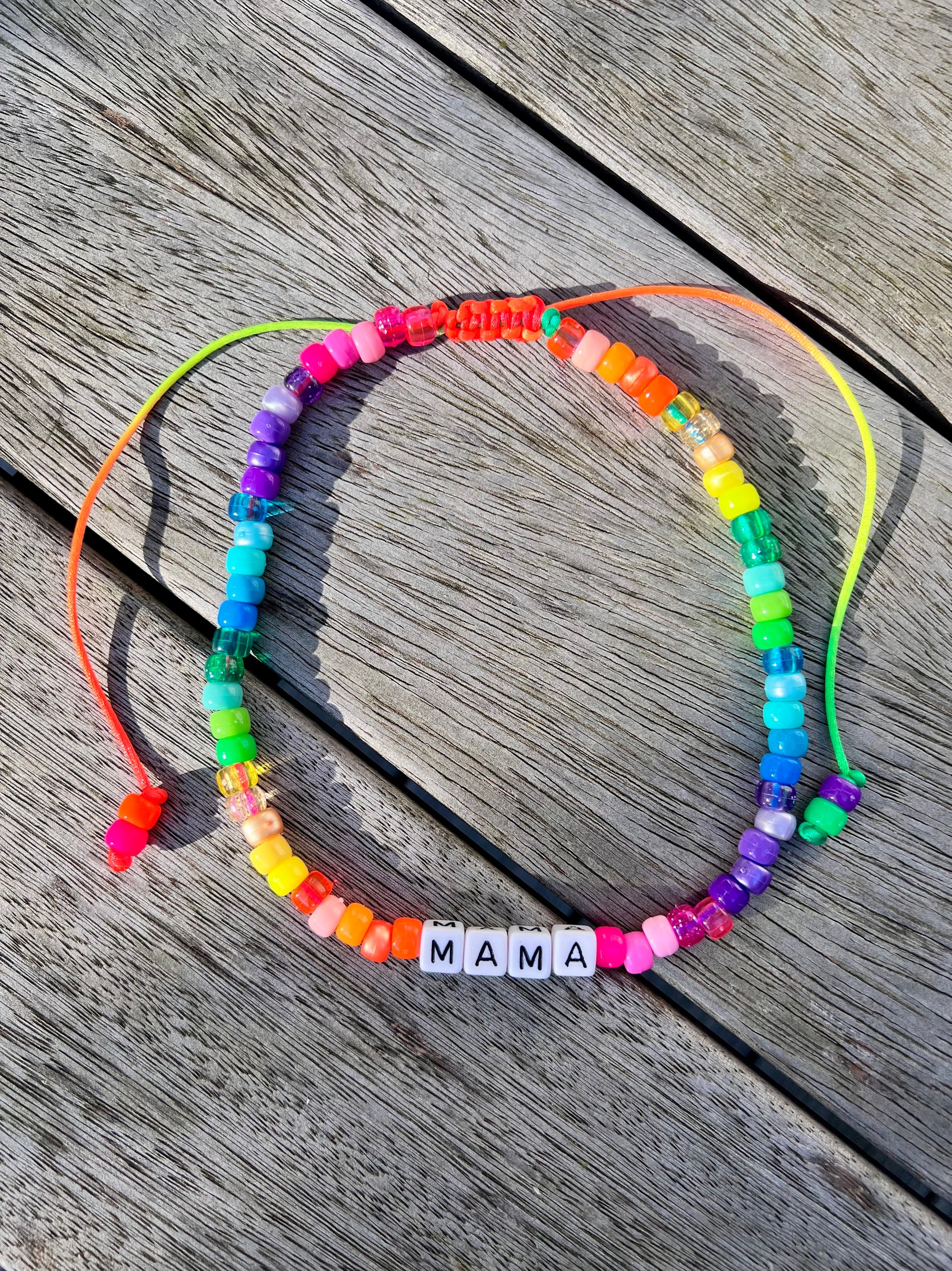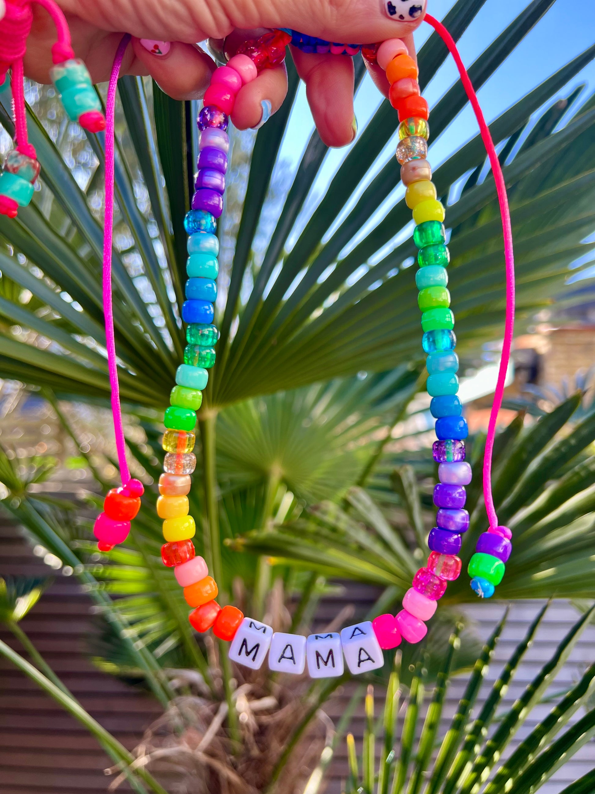Handmade with love my me (Mel) using high quality pony beads and large letter beads spelling the word MAMA ๐