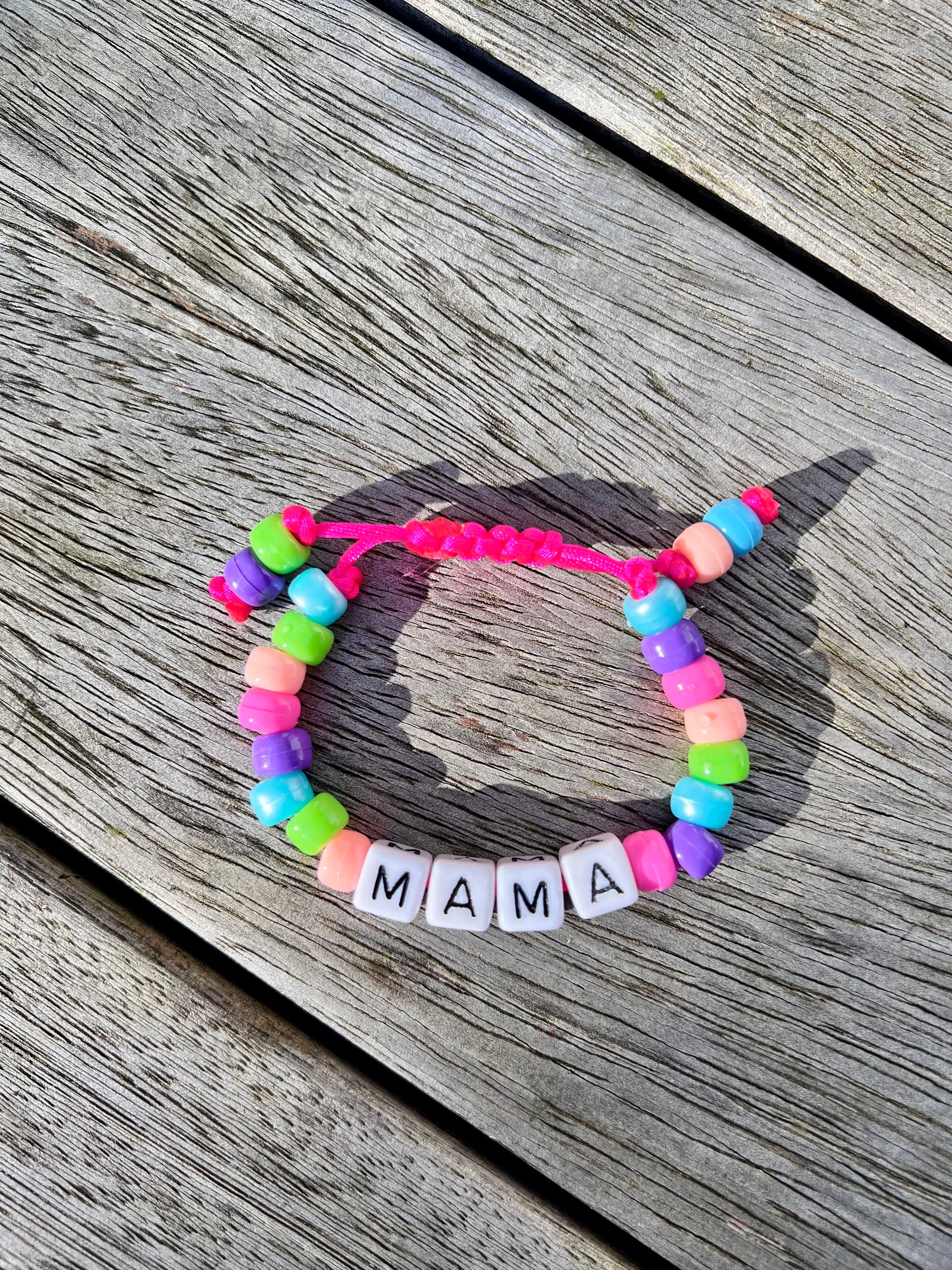 Handmade with love my me (Mel) using high quality pony beads and large letter beads spelling the word MAMA 💘