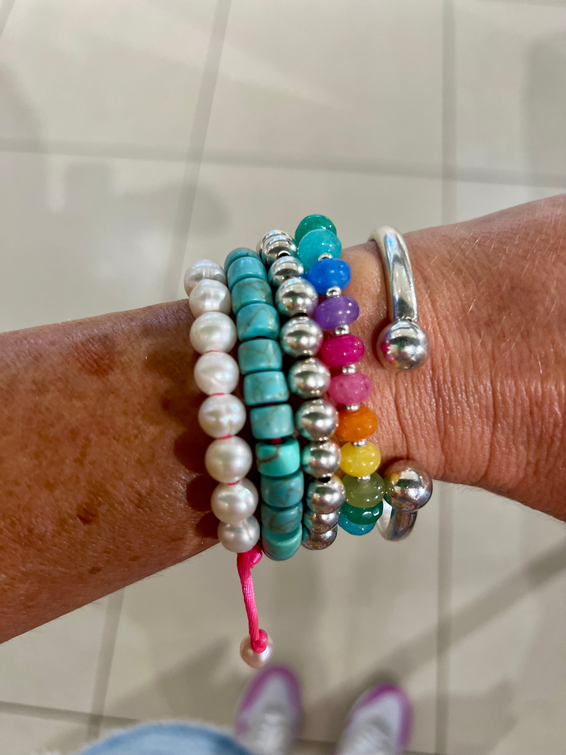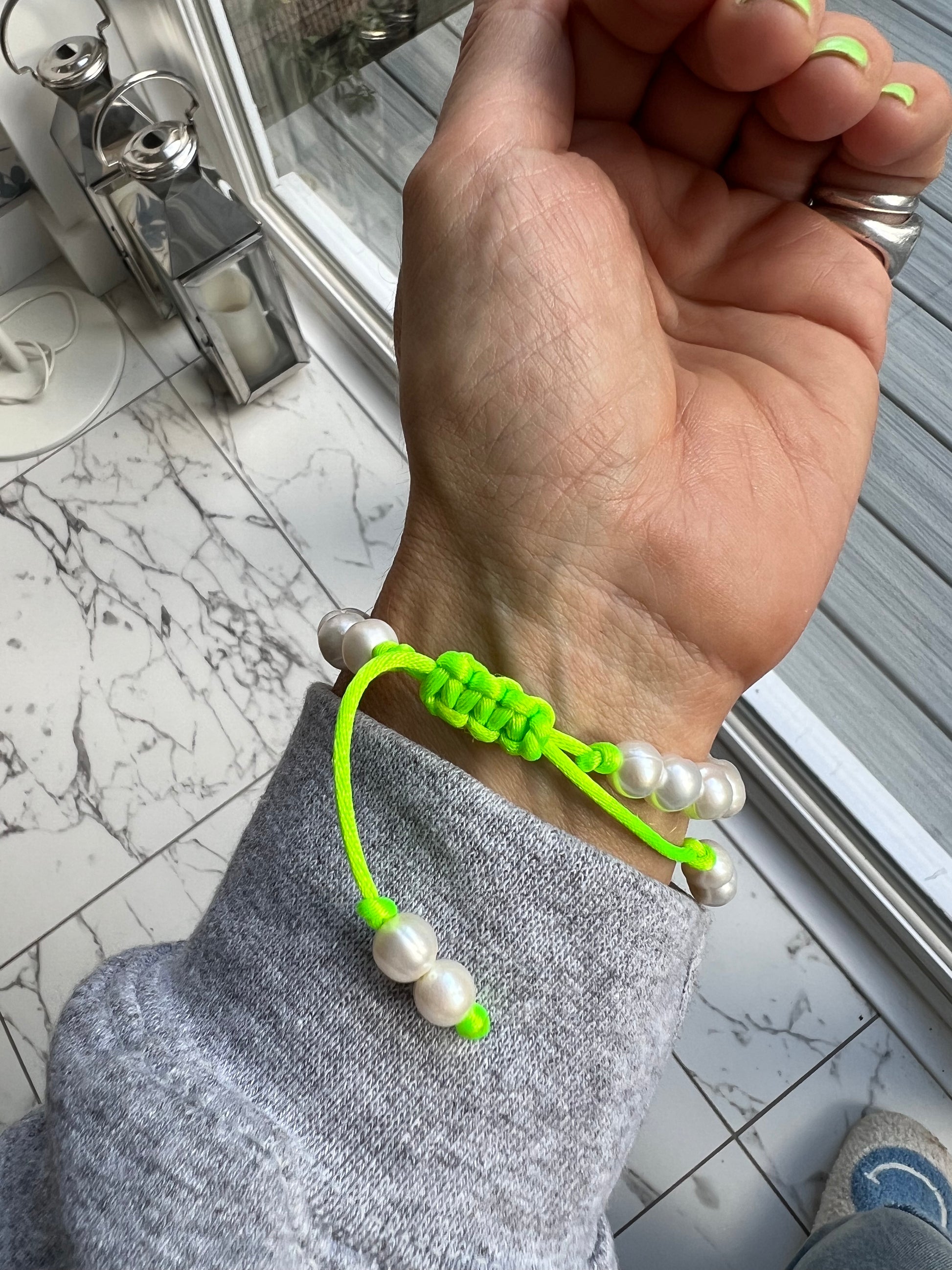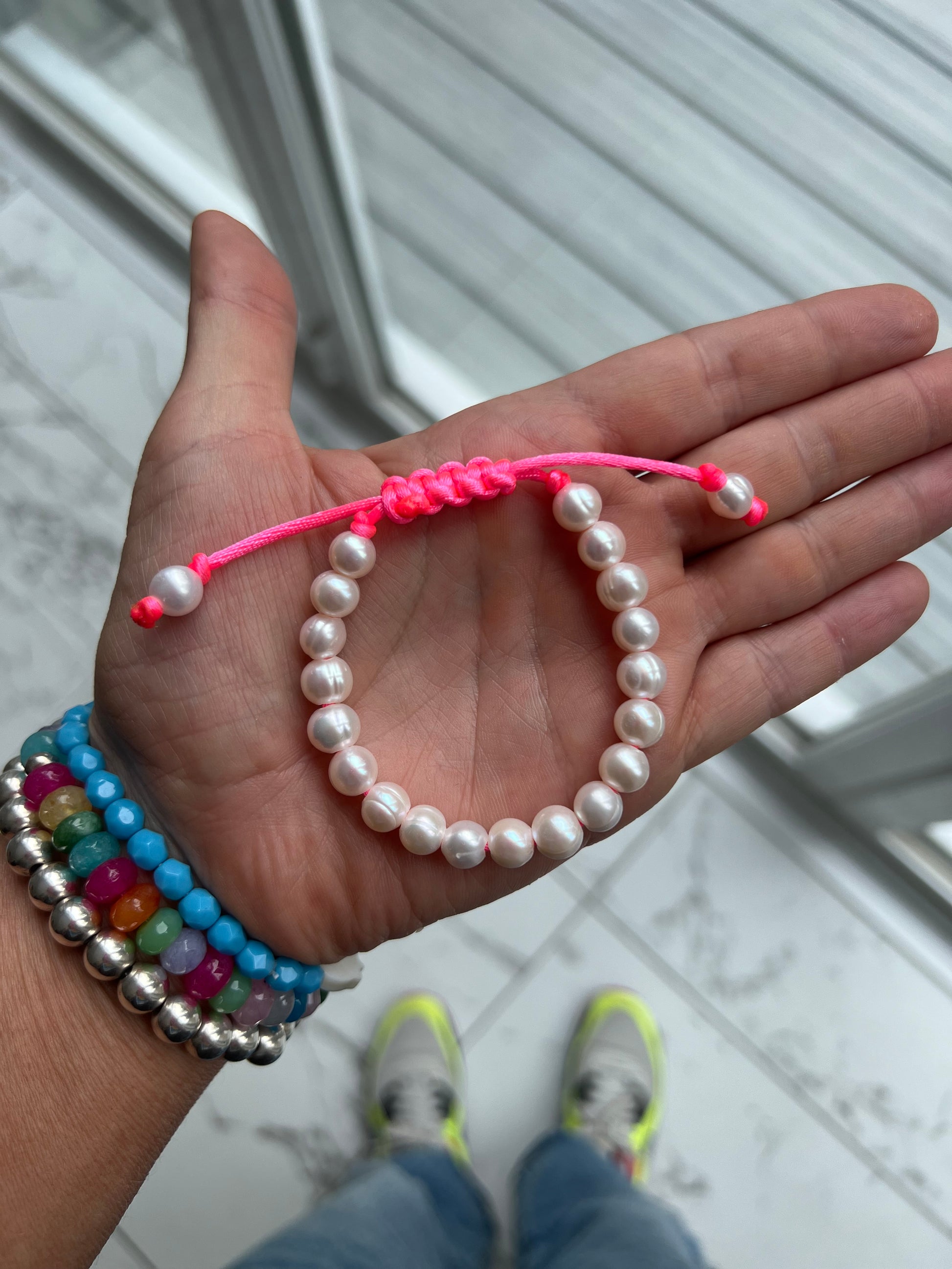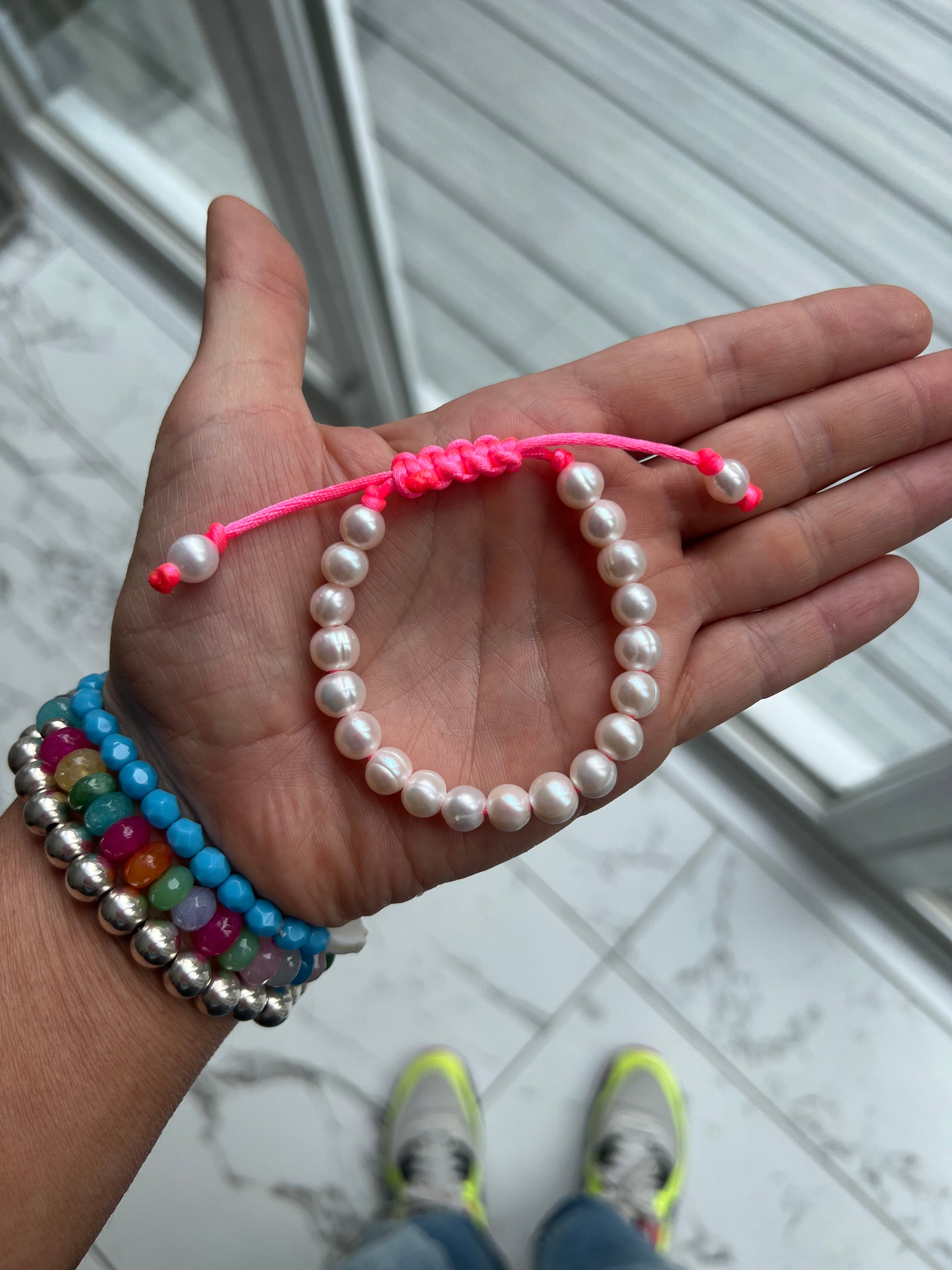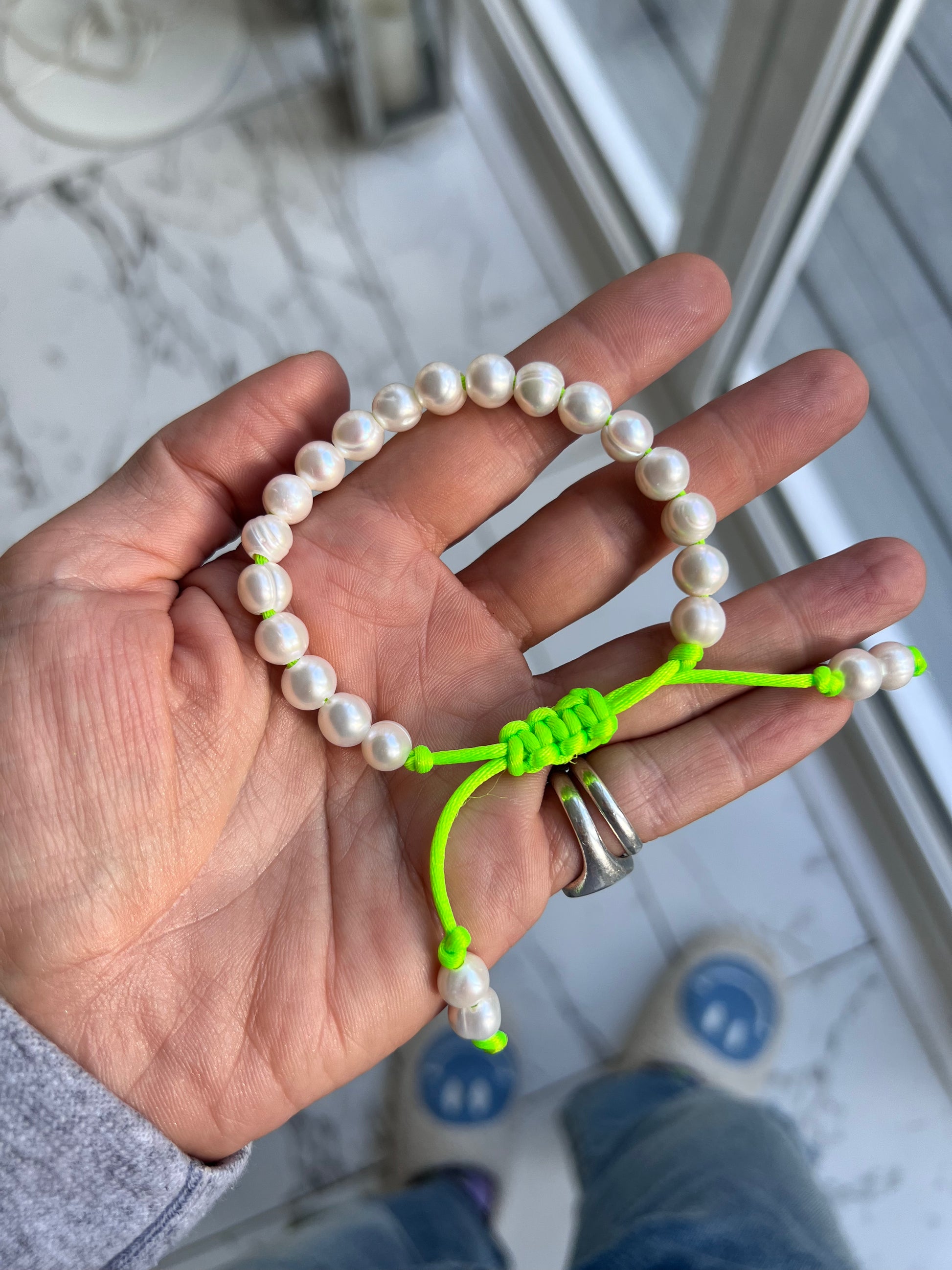 Made with Grade A Freshwater Pearls and threaded with neon cord - this bracelet is a classic with a modern twist! π