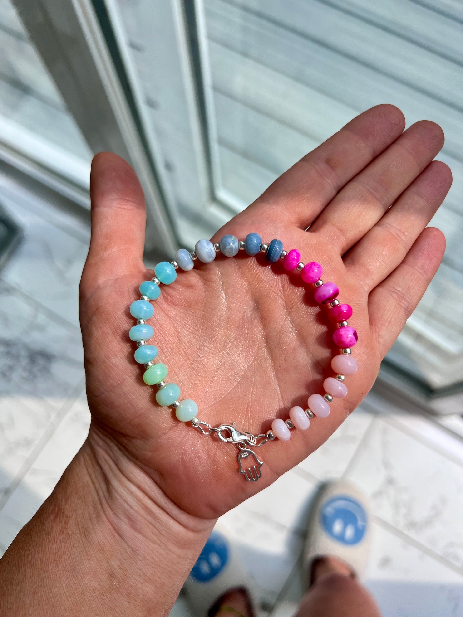 This beautiful Ombre Opal Bracelet is a little bit special with its Sterling Silver Hamsa 🪬 Charm - it’s truly one-of-a-kind.