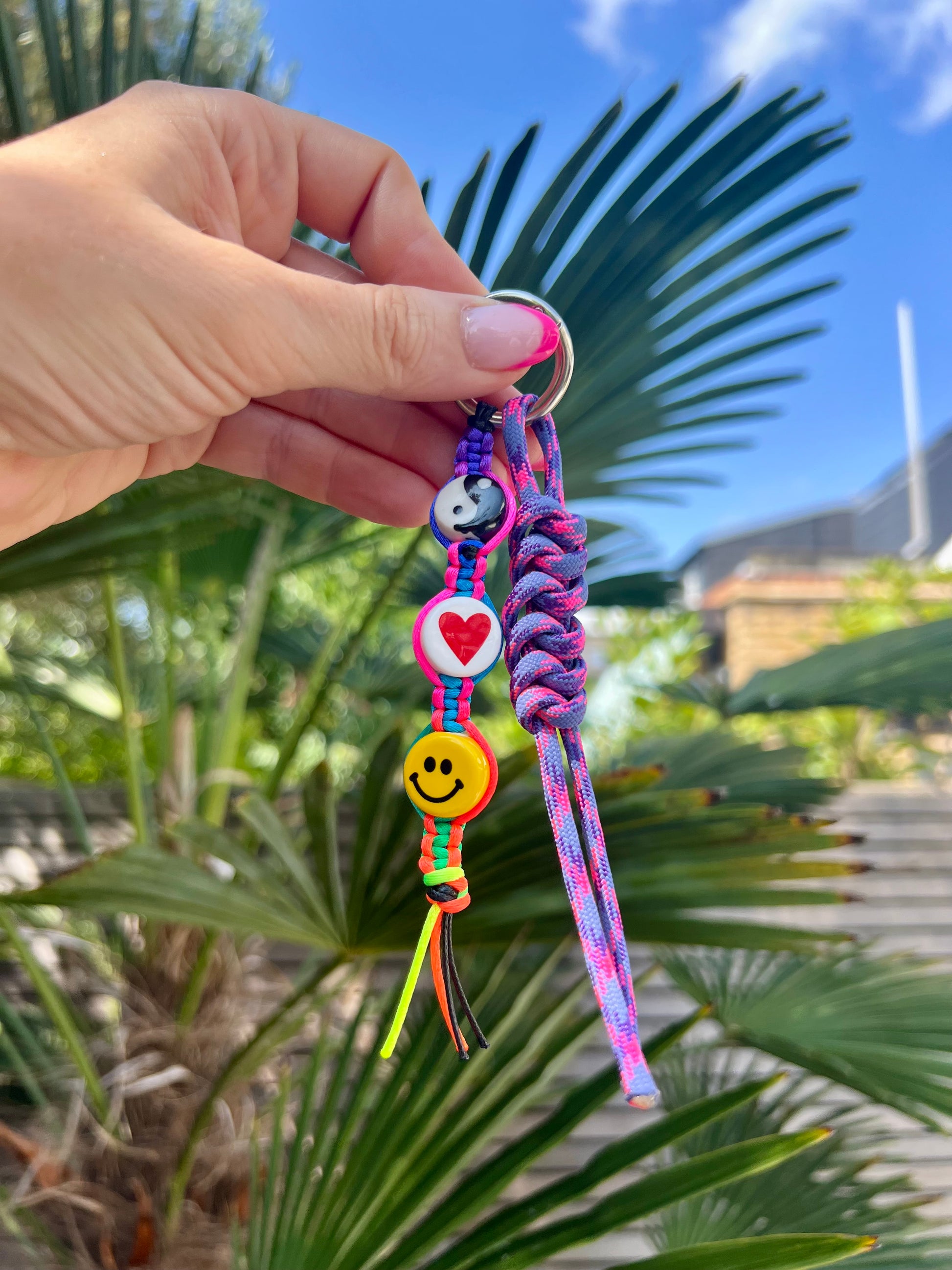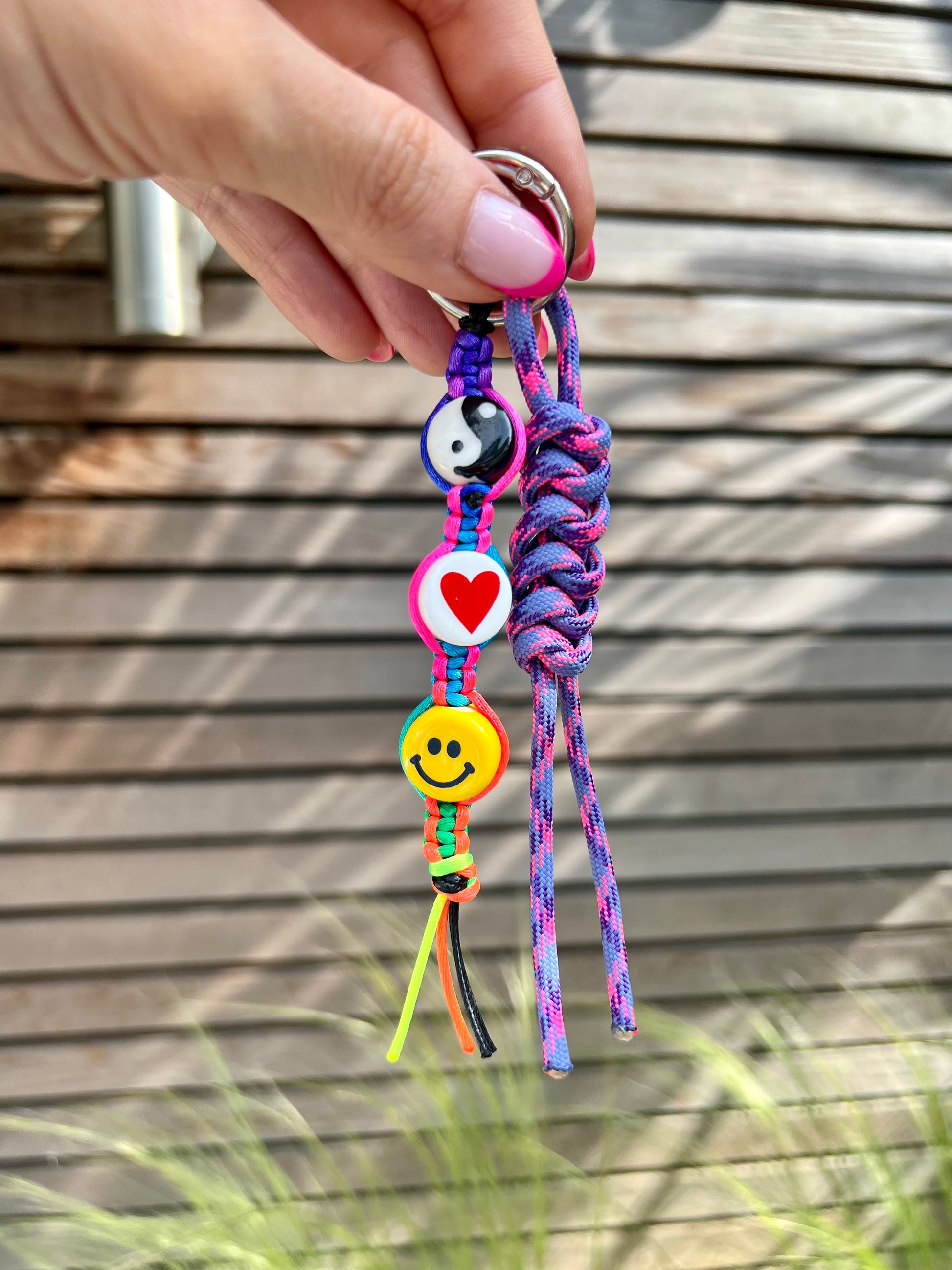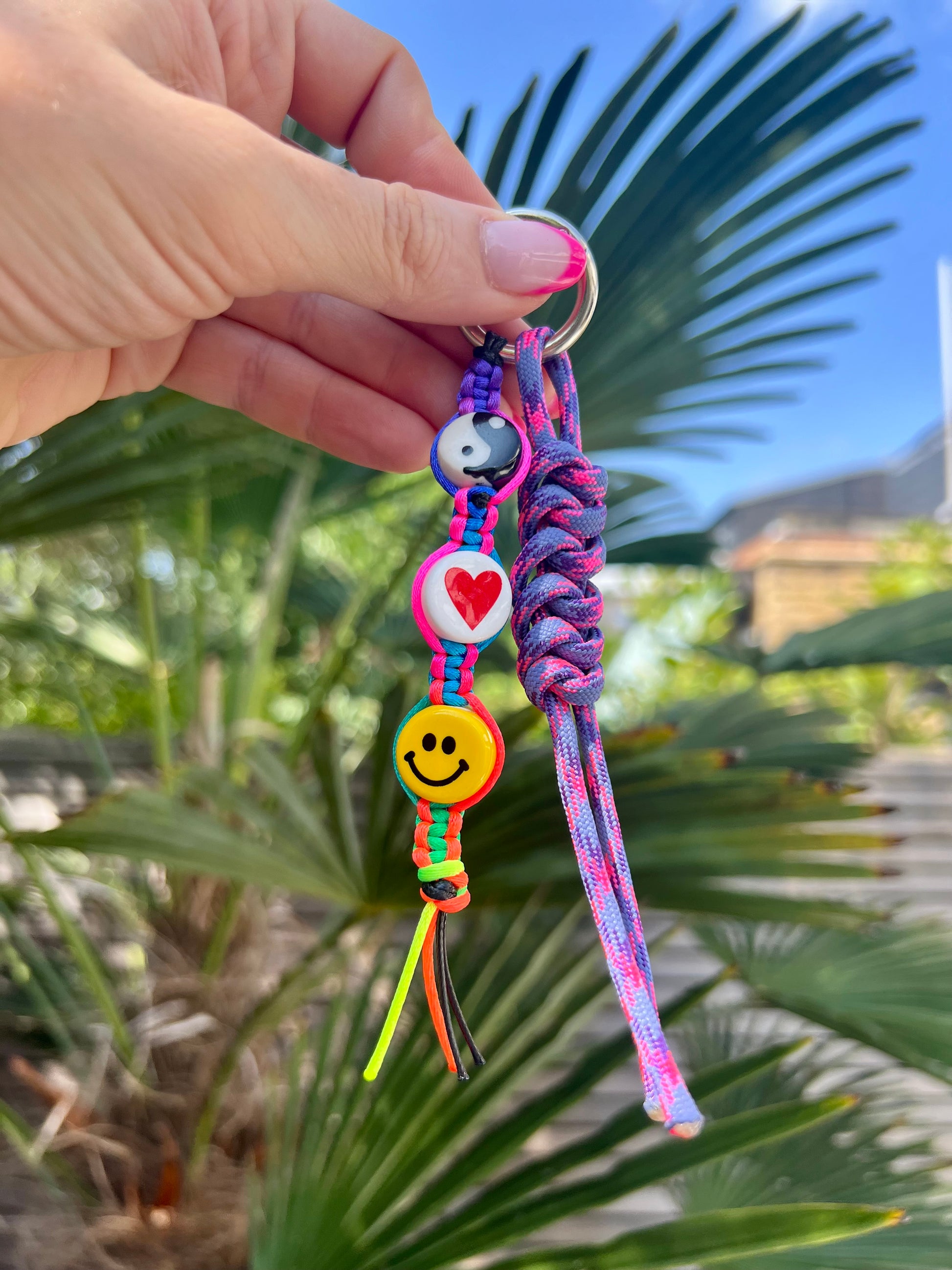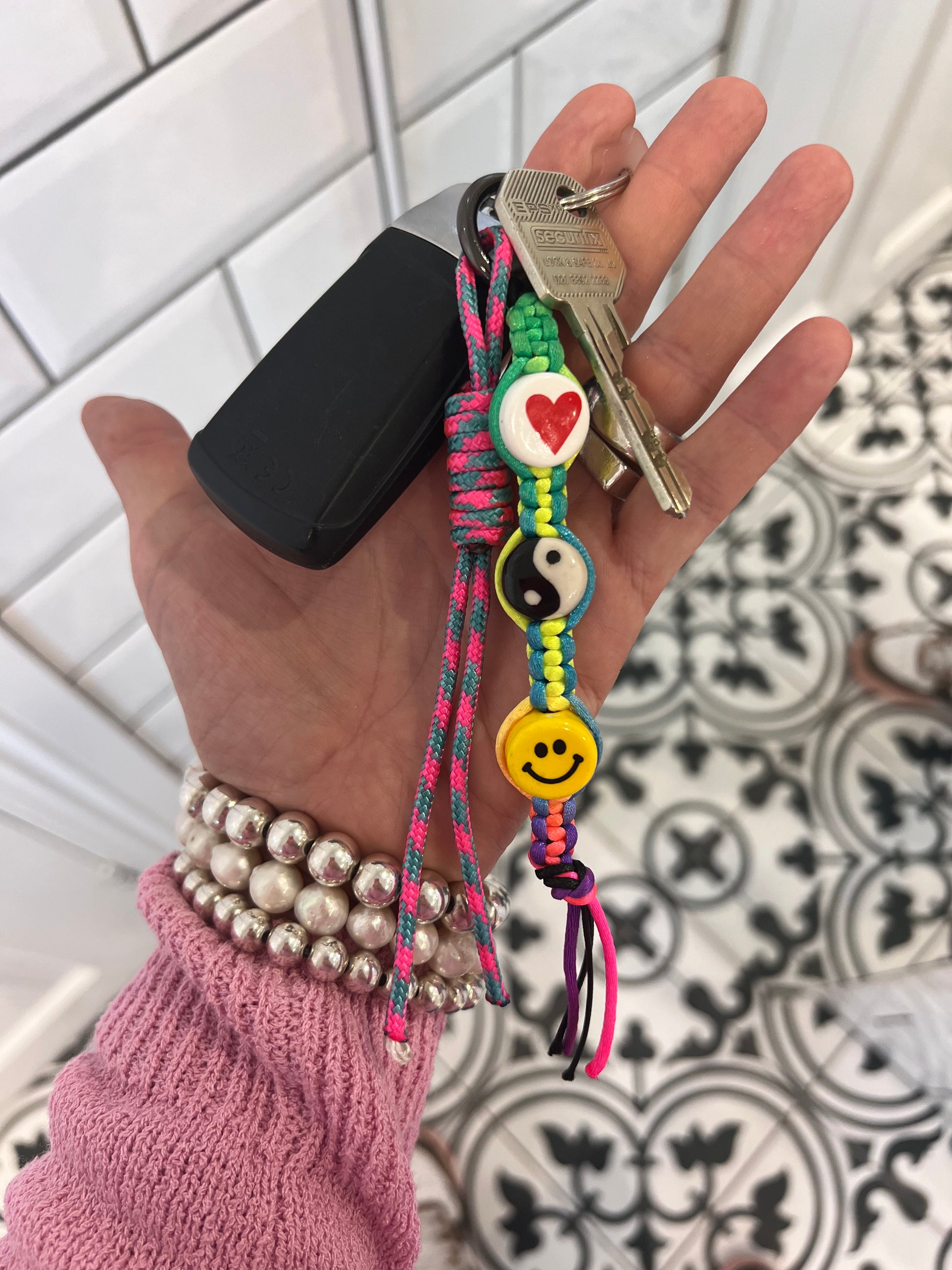Handmade by me (Mel! 🙋🏼♀️), this bold, neon macramé key/bag charm is more than just an accessory—it’s a little reminder of the good vibes we all need right now: