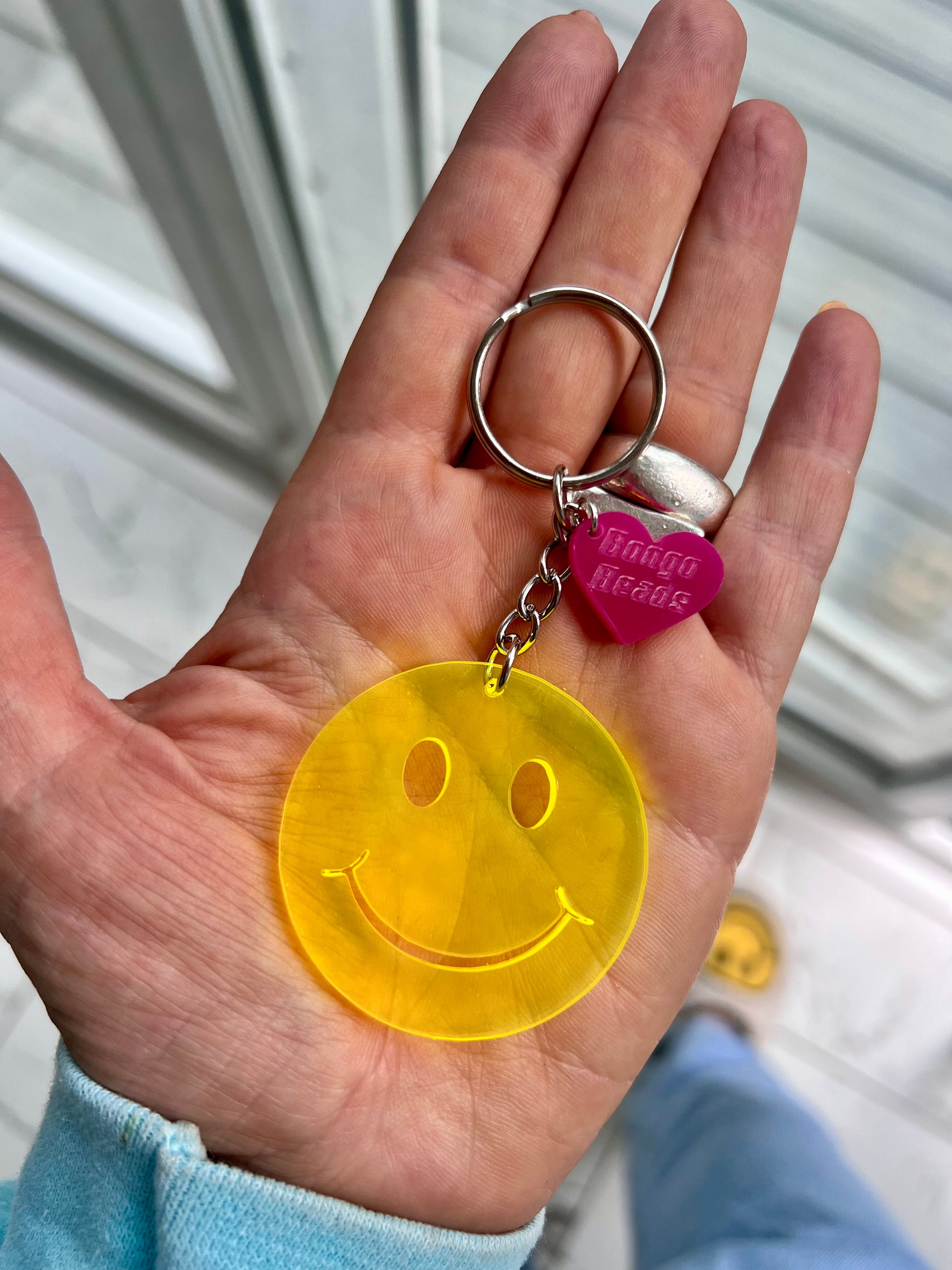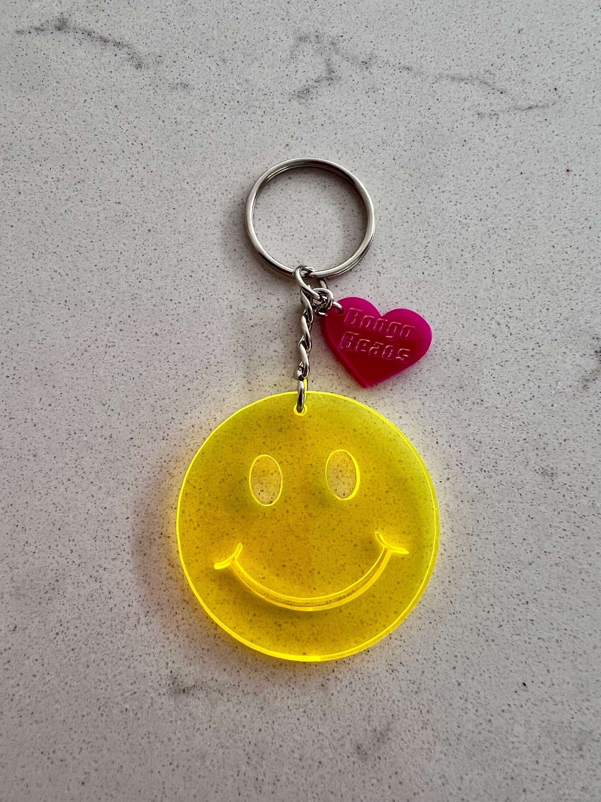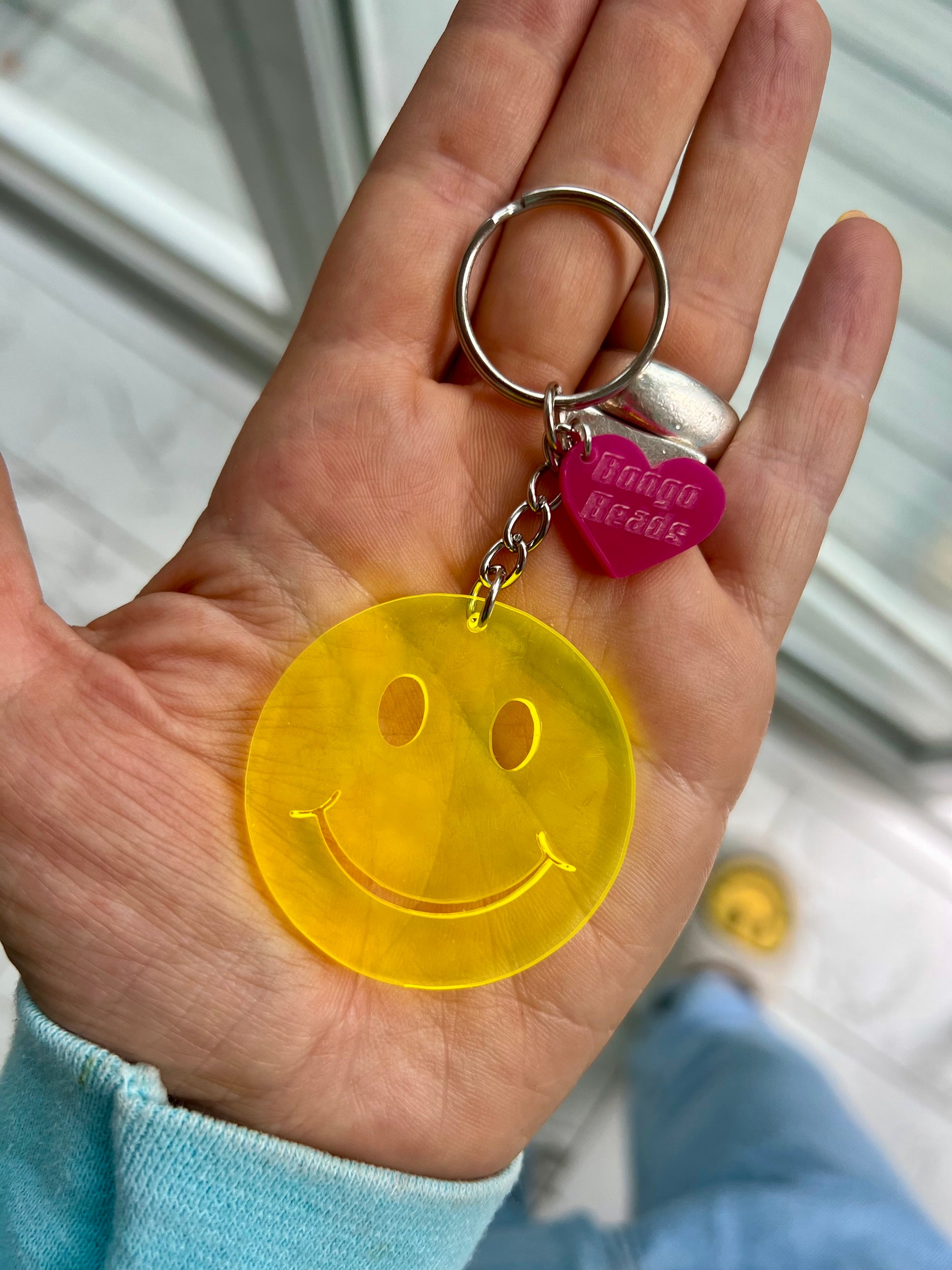 This listing is for 1 x Smiley Face (Transparent Yellow) Key Ring—because joy is a vibe.