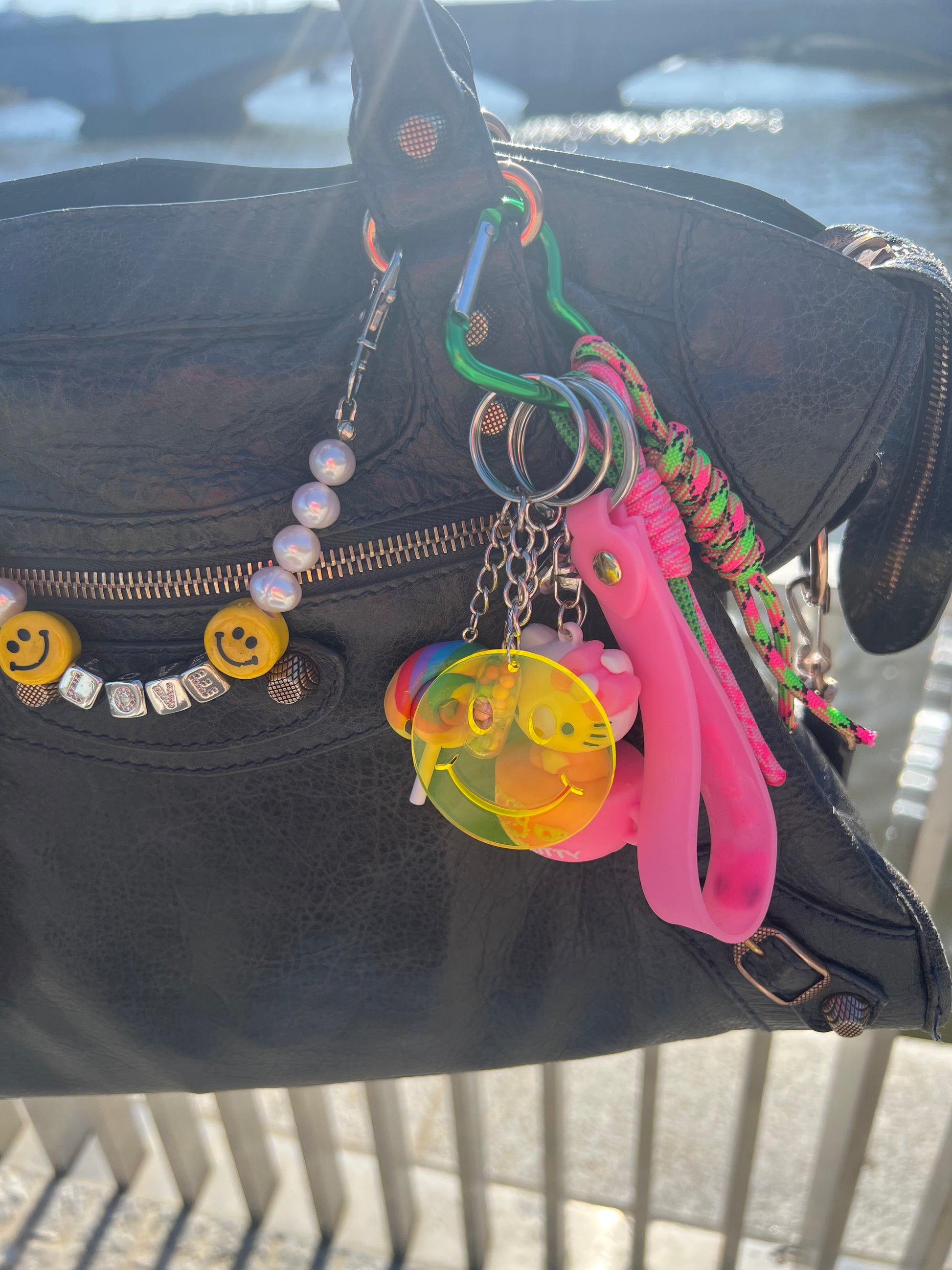 Happiness on a key ring—this translucent yellow Smiley charm is a little reminder to look on the bright side.