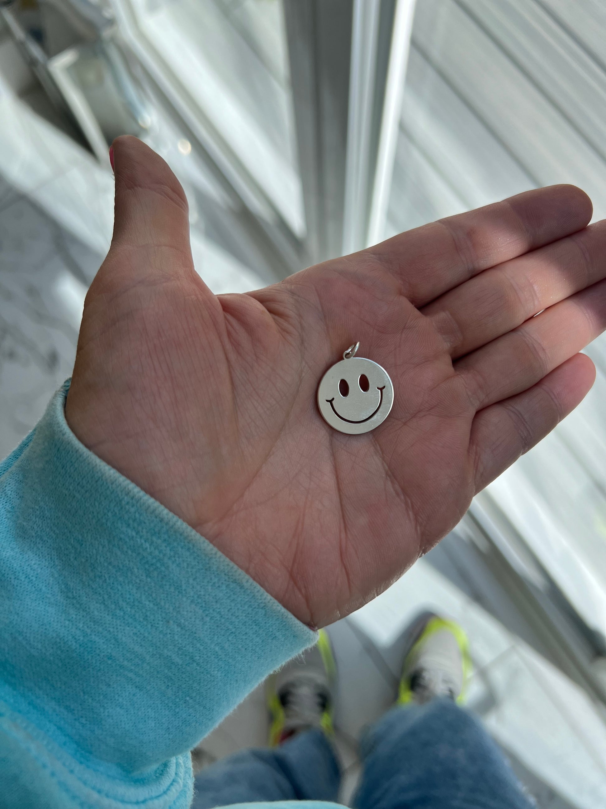 Good solid smiley face, fits onto a necklace I already own which is what I wanted...looks cool 😜
