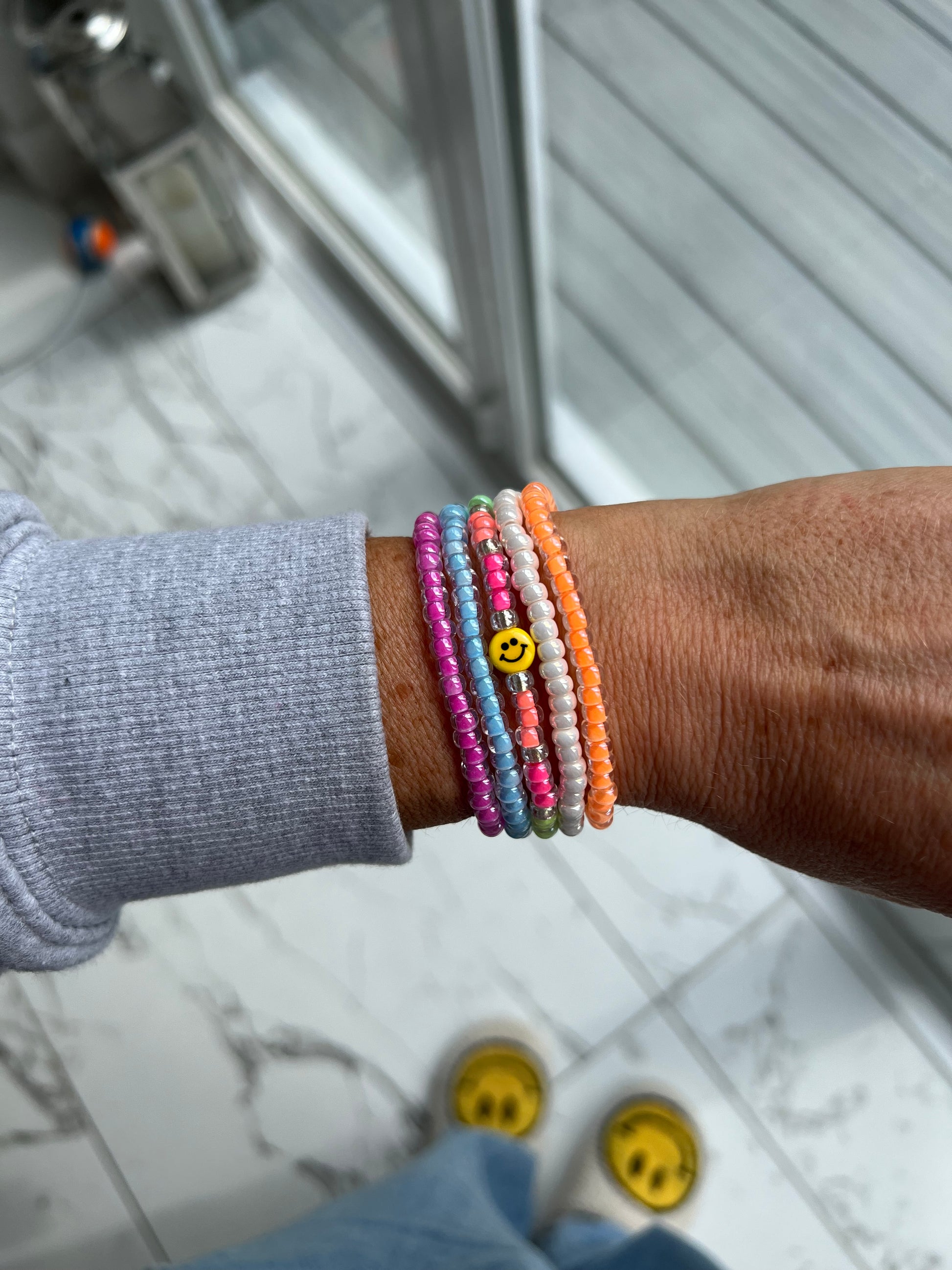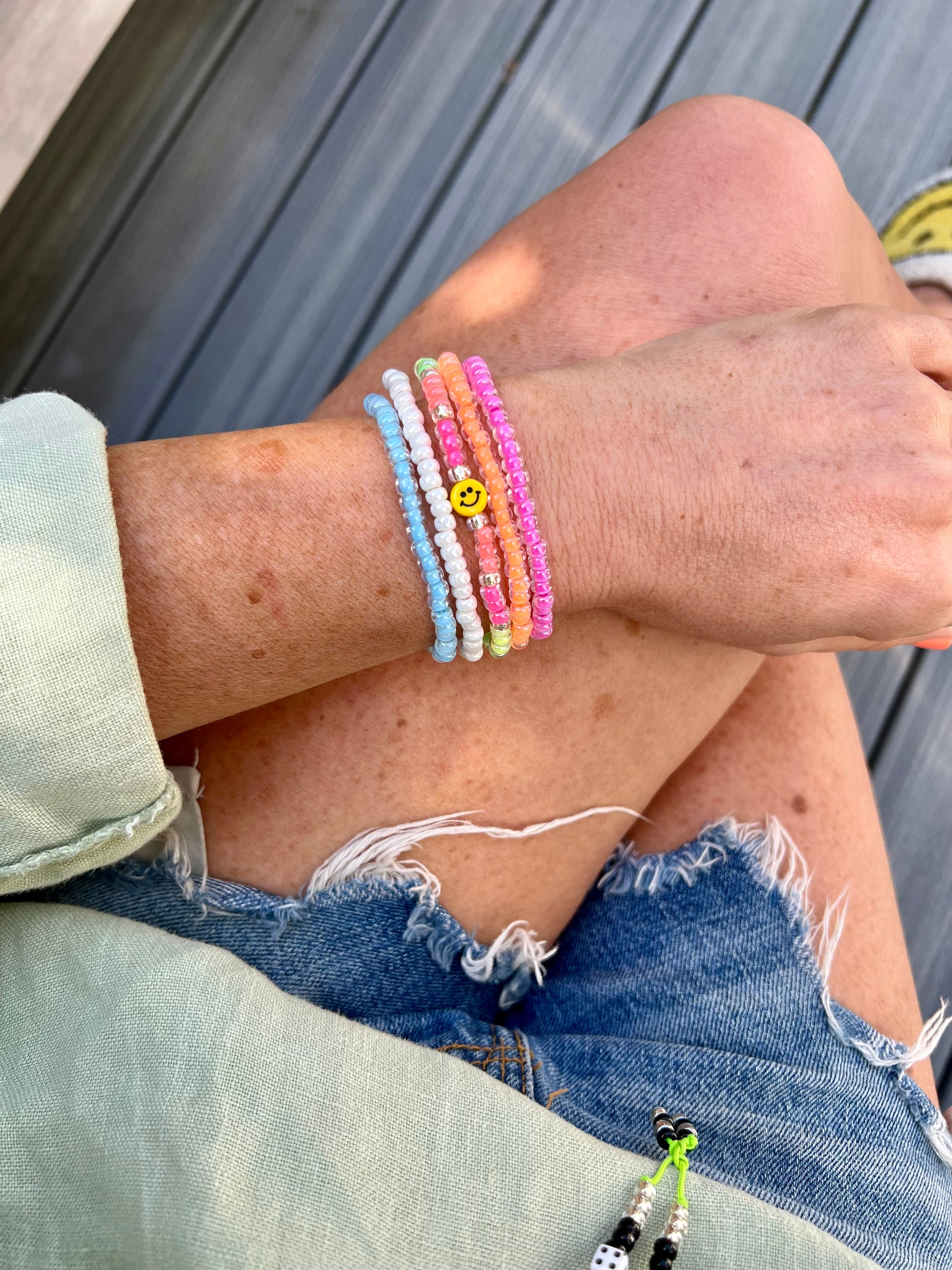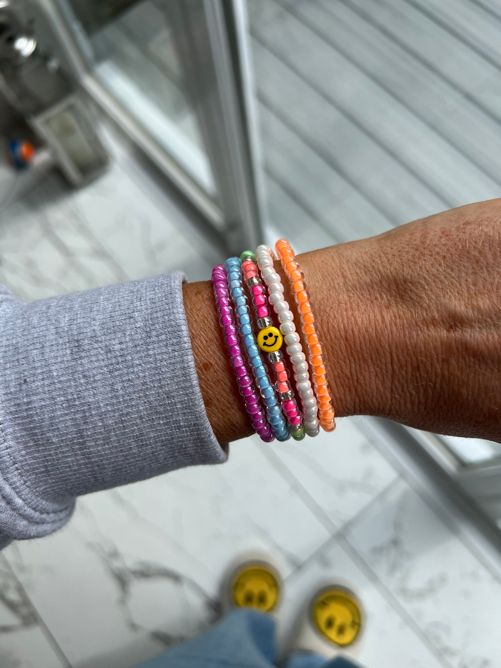 The Tiny Smiley bracelet stack consists of;