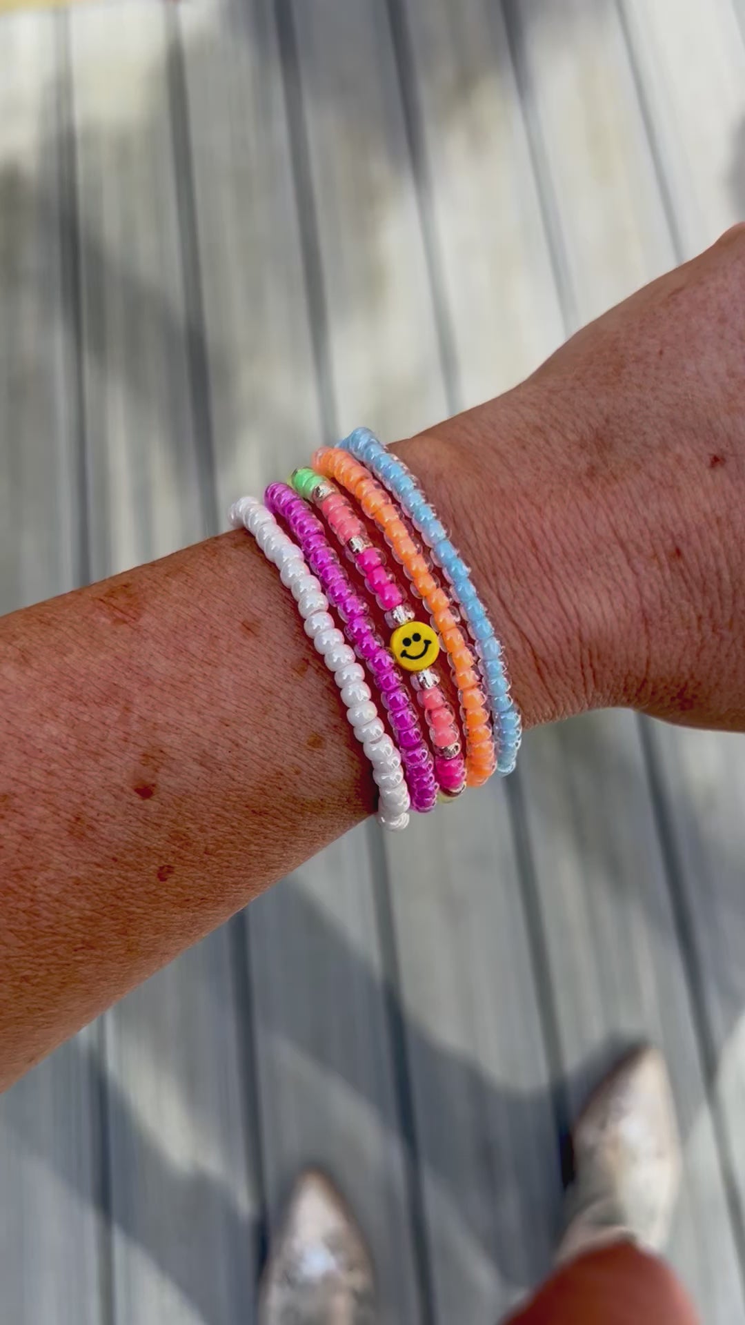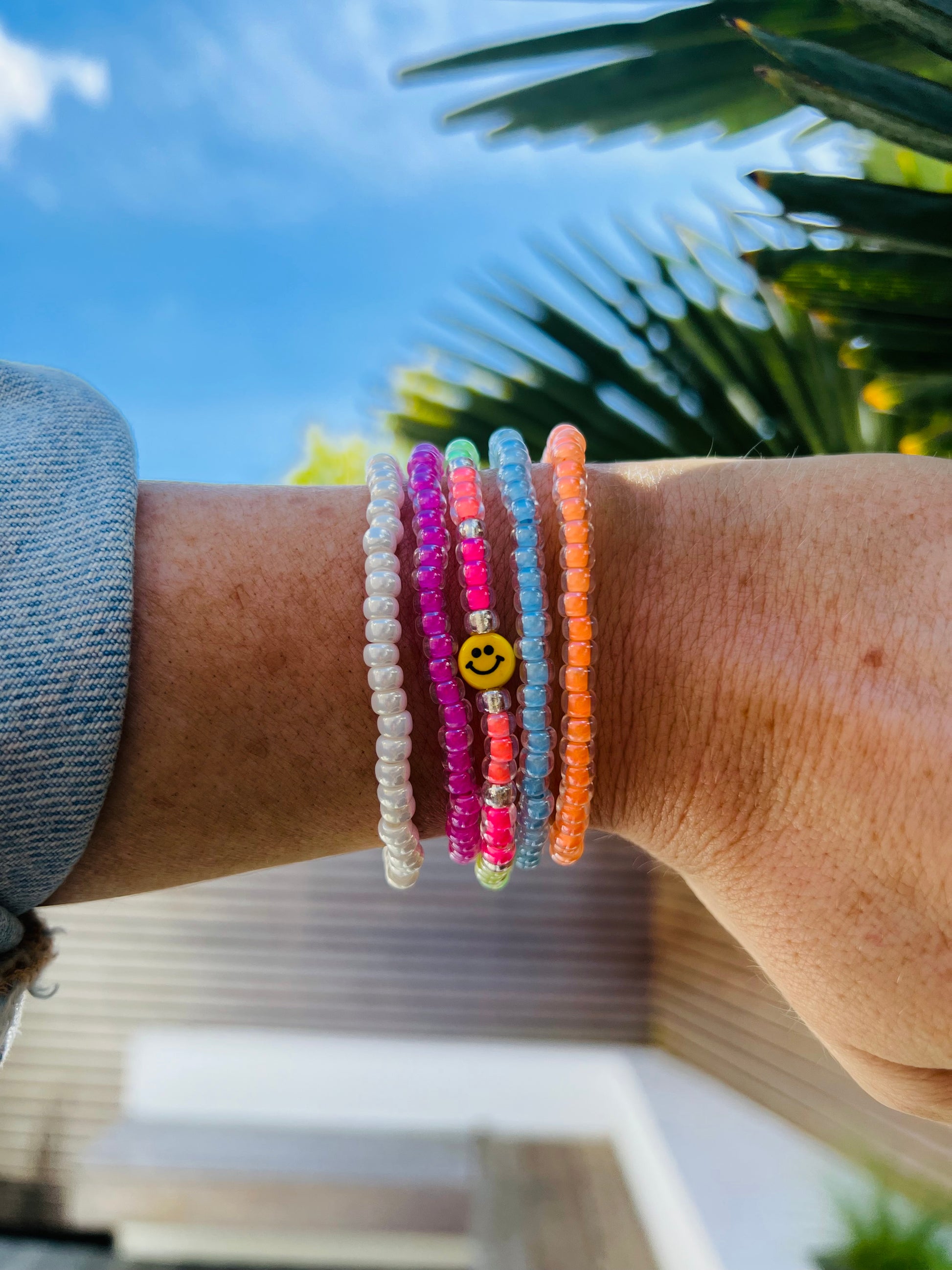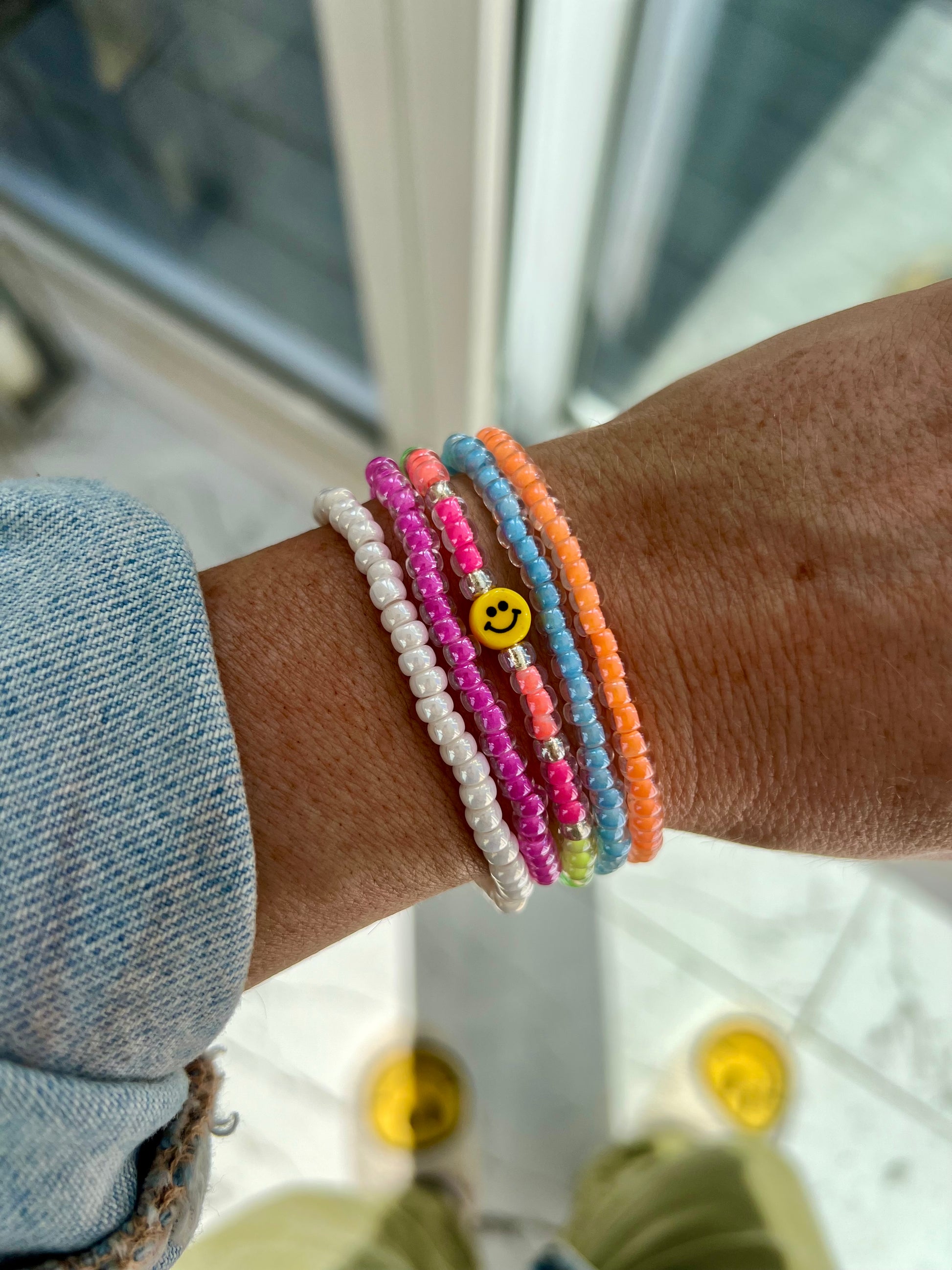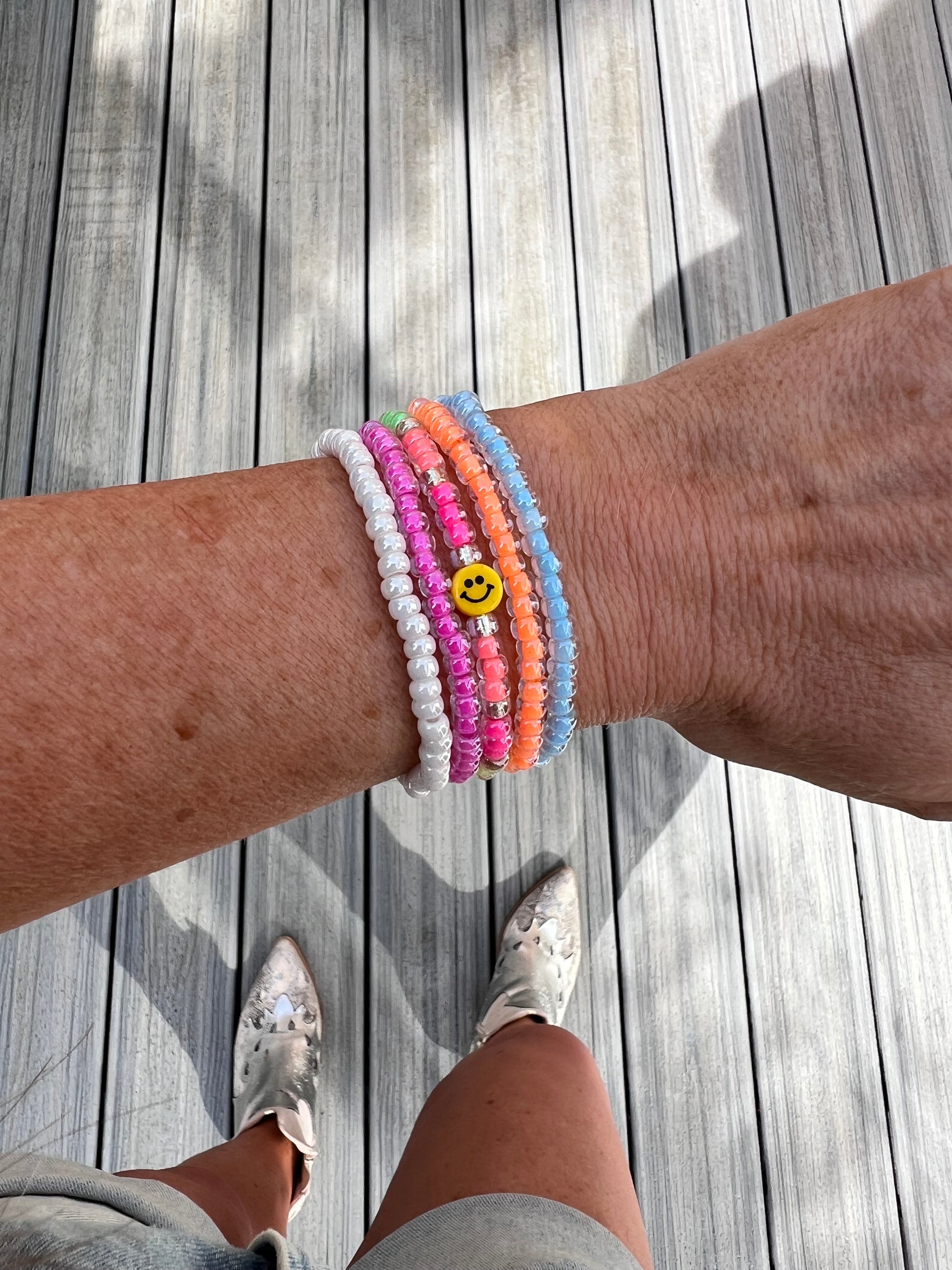 The Tiny Smiley bracelet stack consists of;