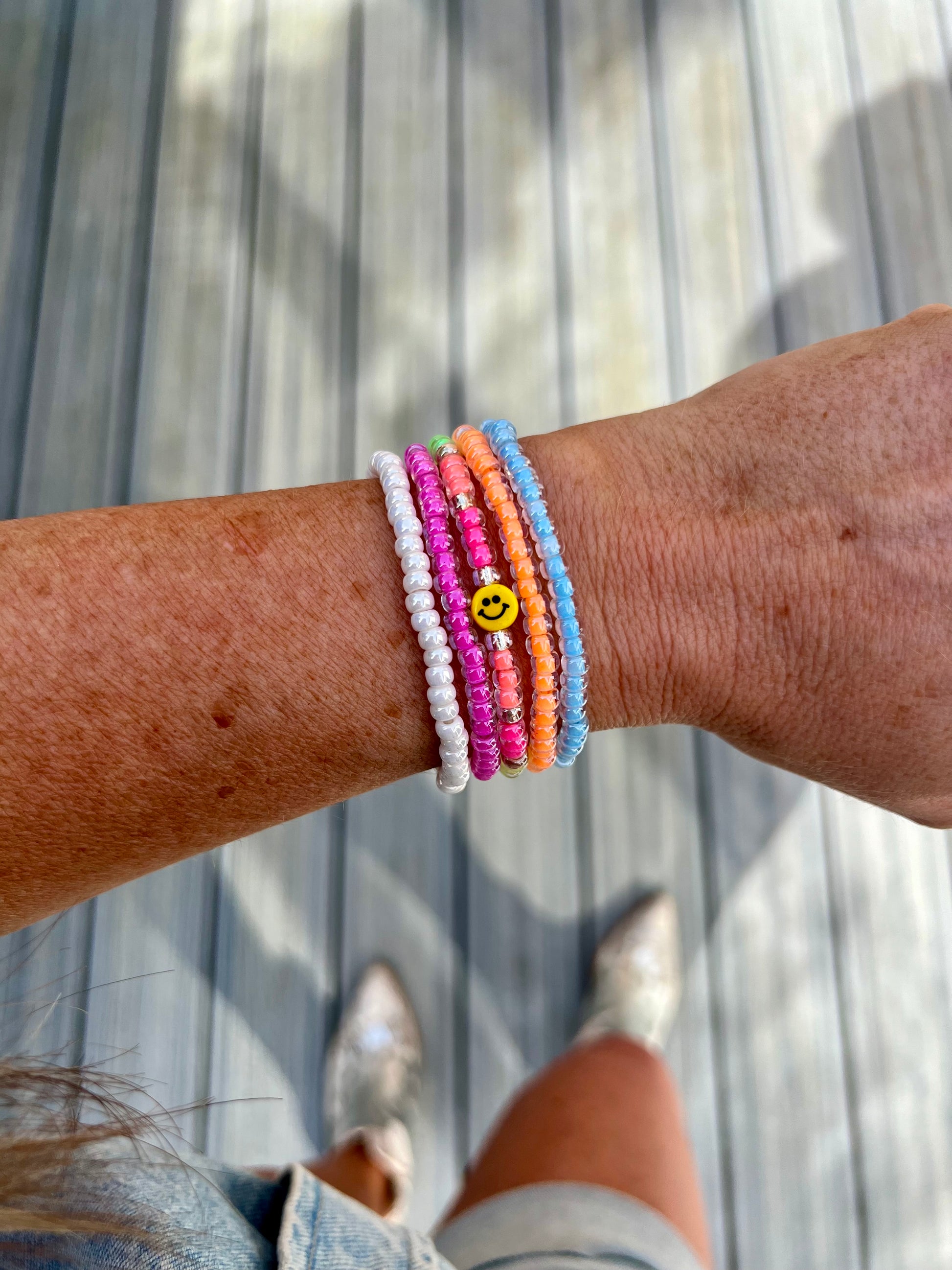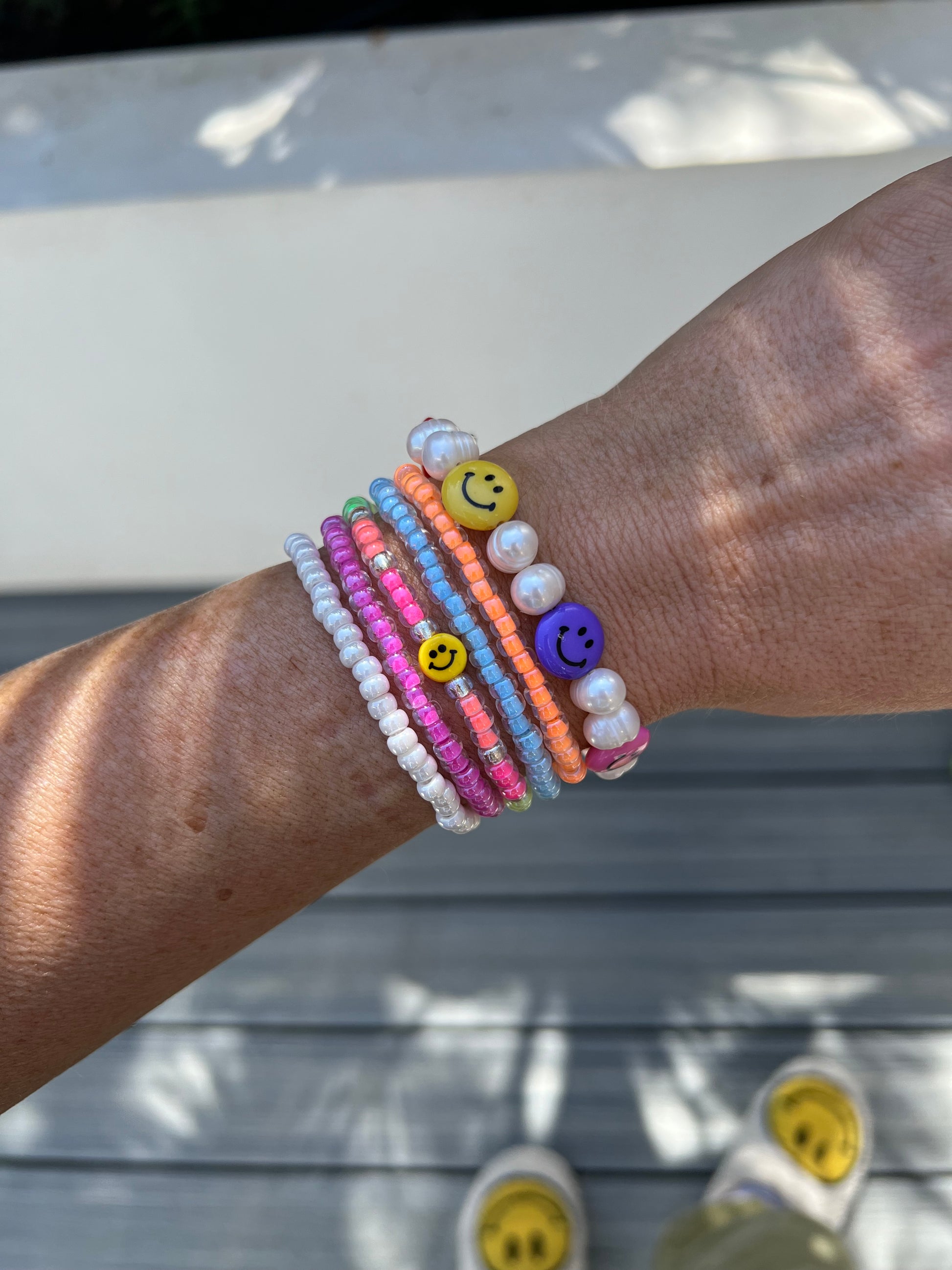 Tiny Smiley Bracelet Stack of 5