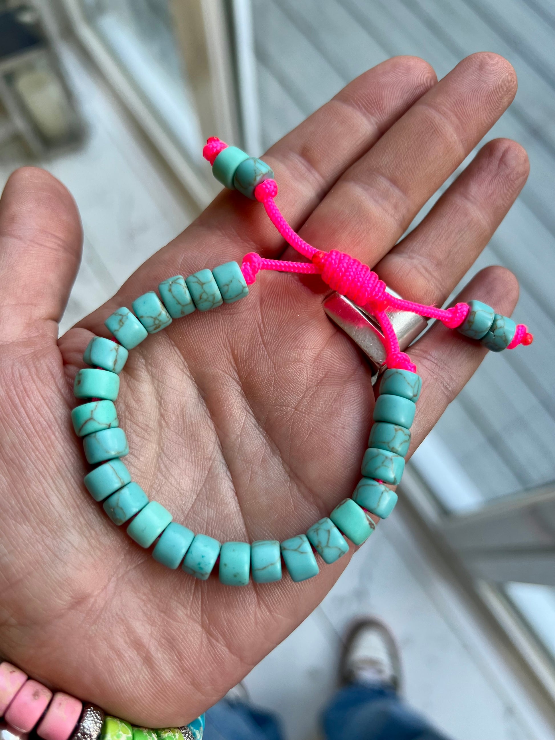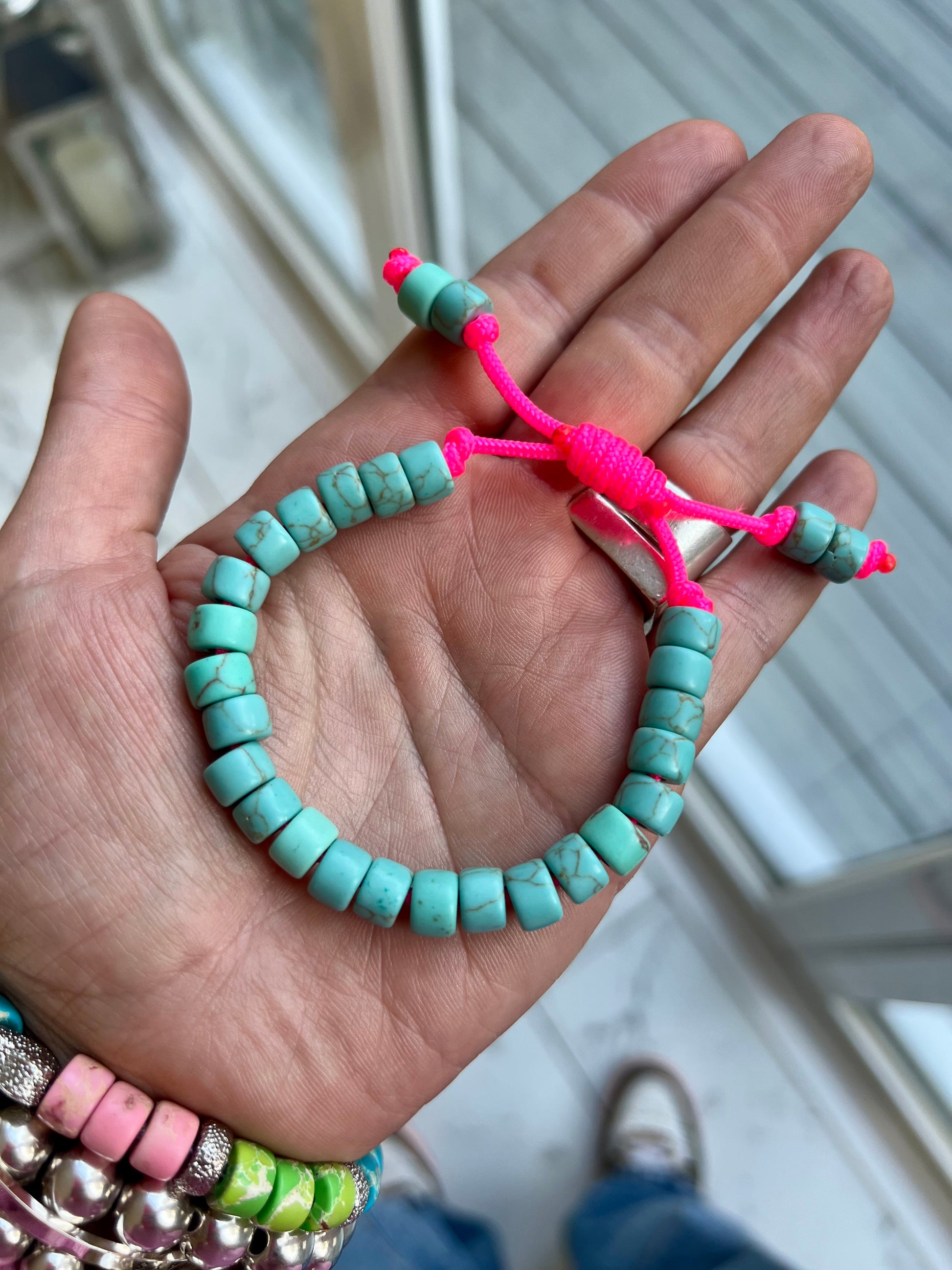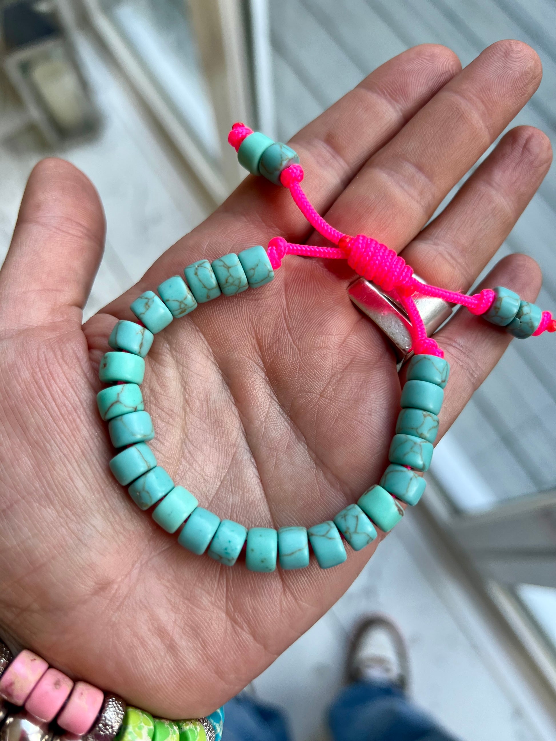 Made from Turquoise Magnesite Gemstone Beads and threaded with a neon pink cord with sliding knot šŖ¢Ā