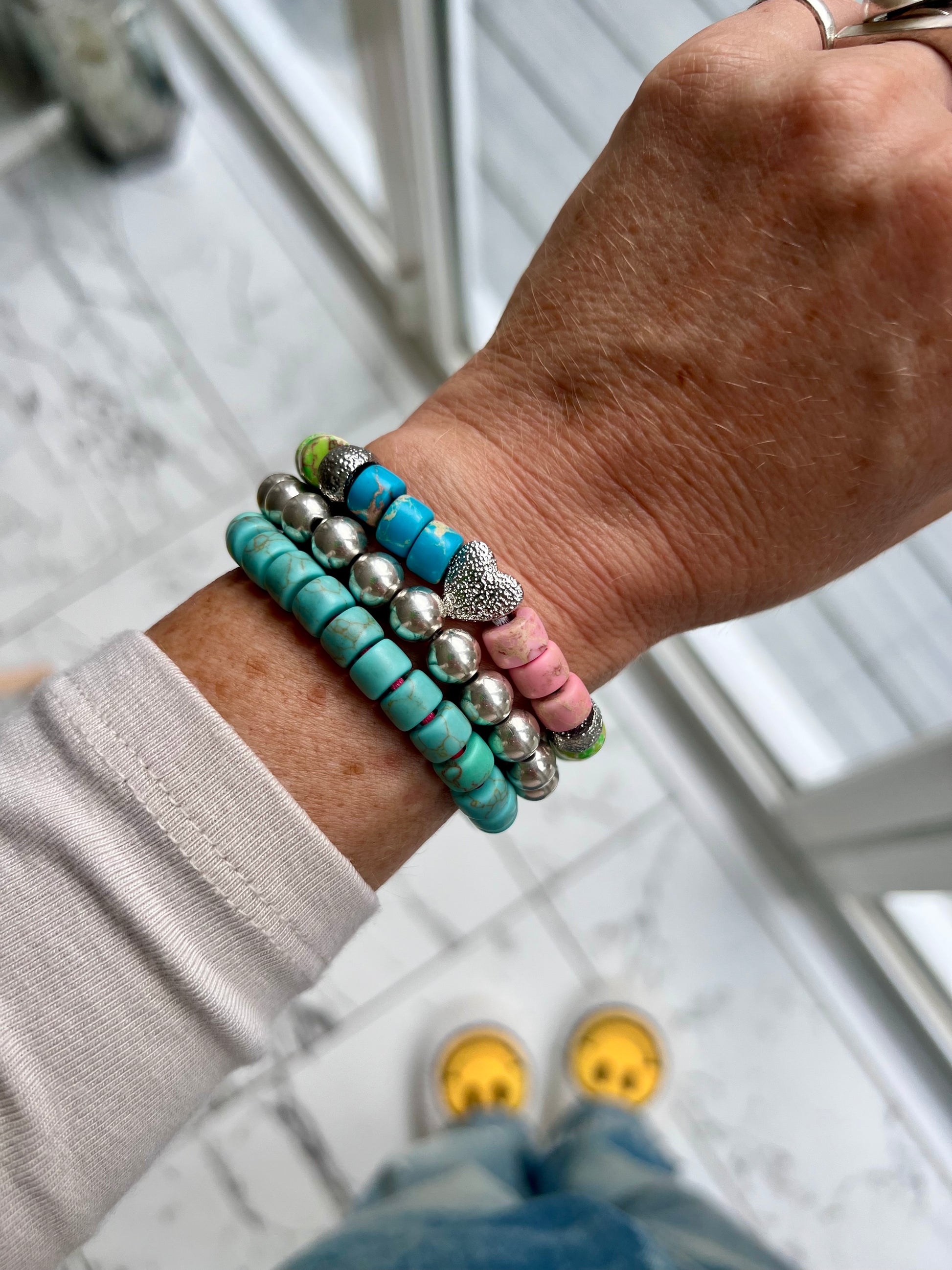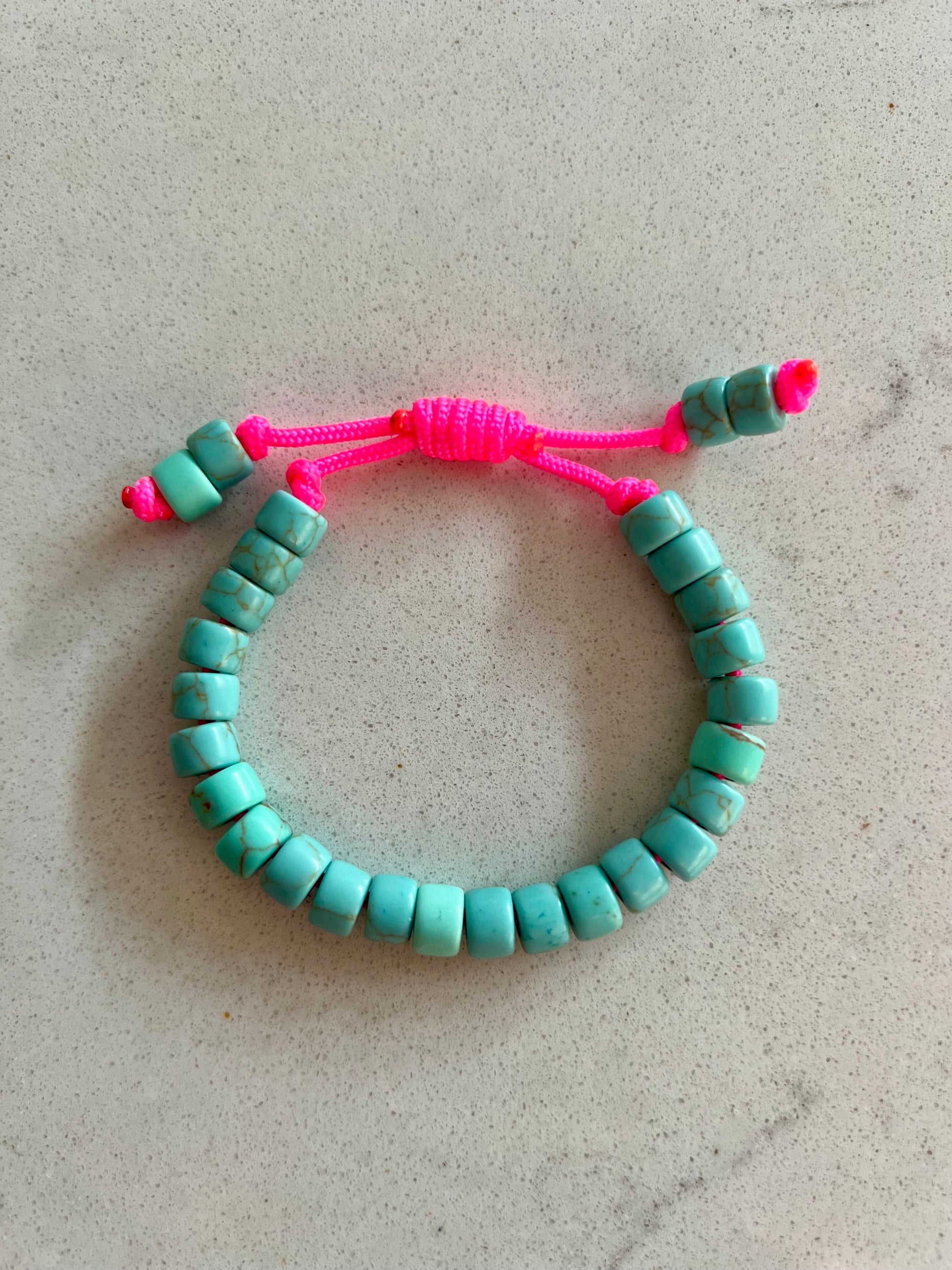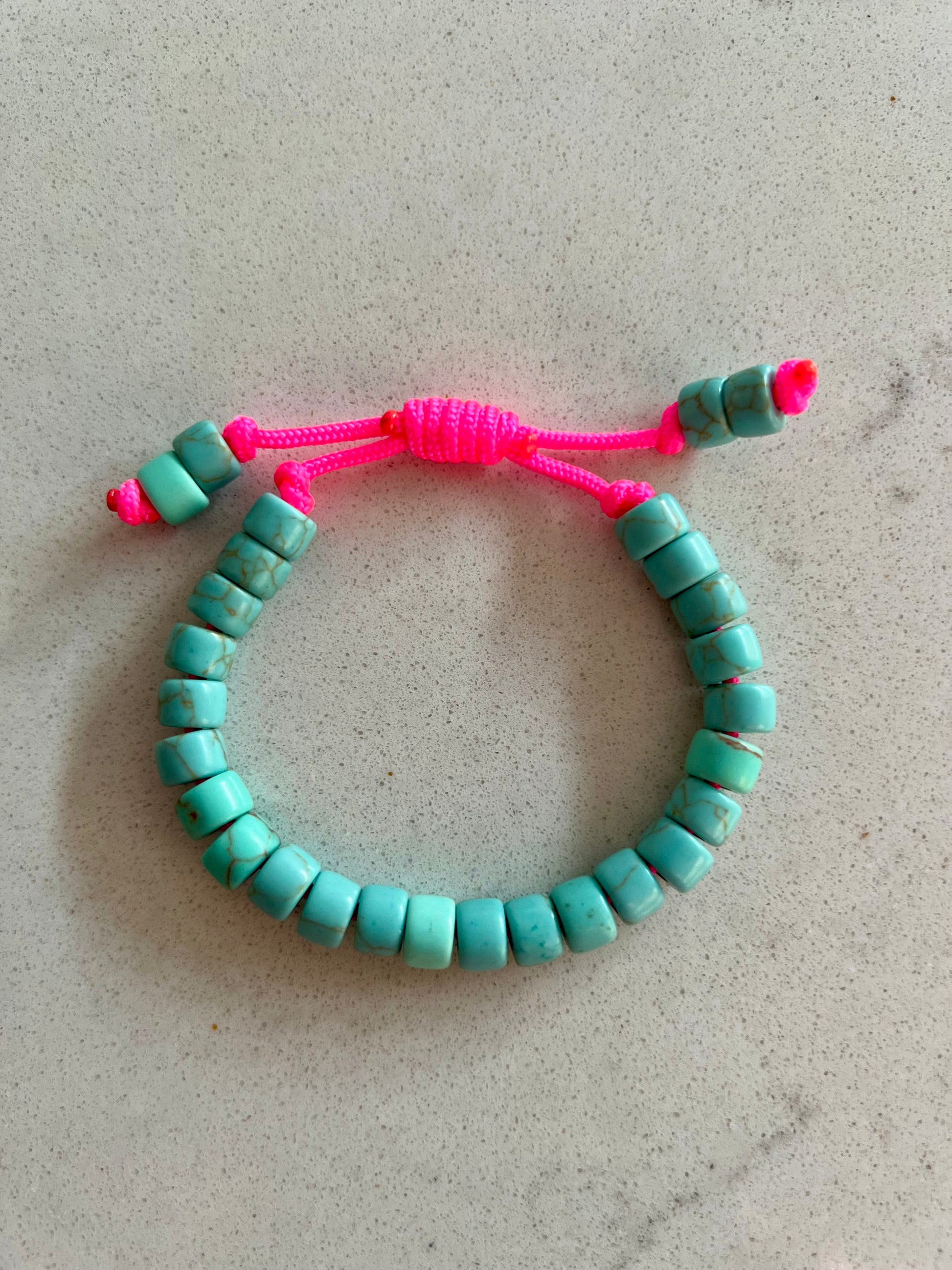 Made from Turquoise Magnesite Gemstone Beads and threaded with a neon pink cord with sliding knot šŖ¢Ā
