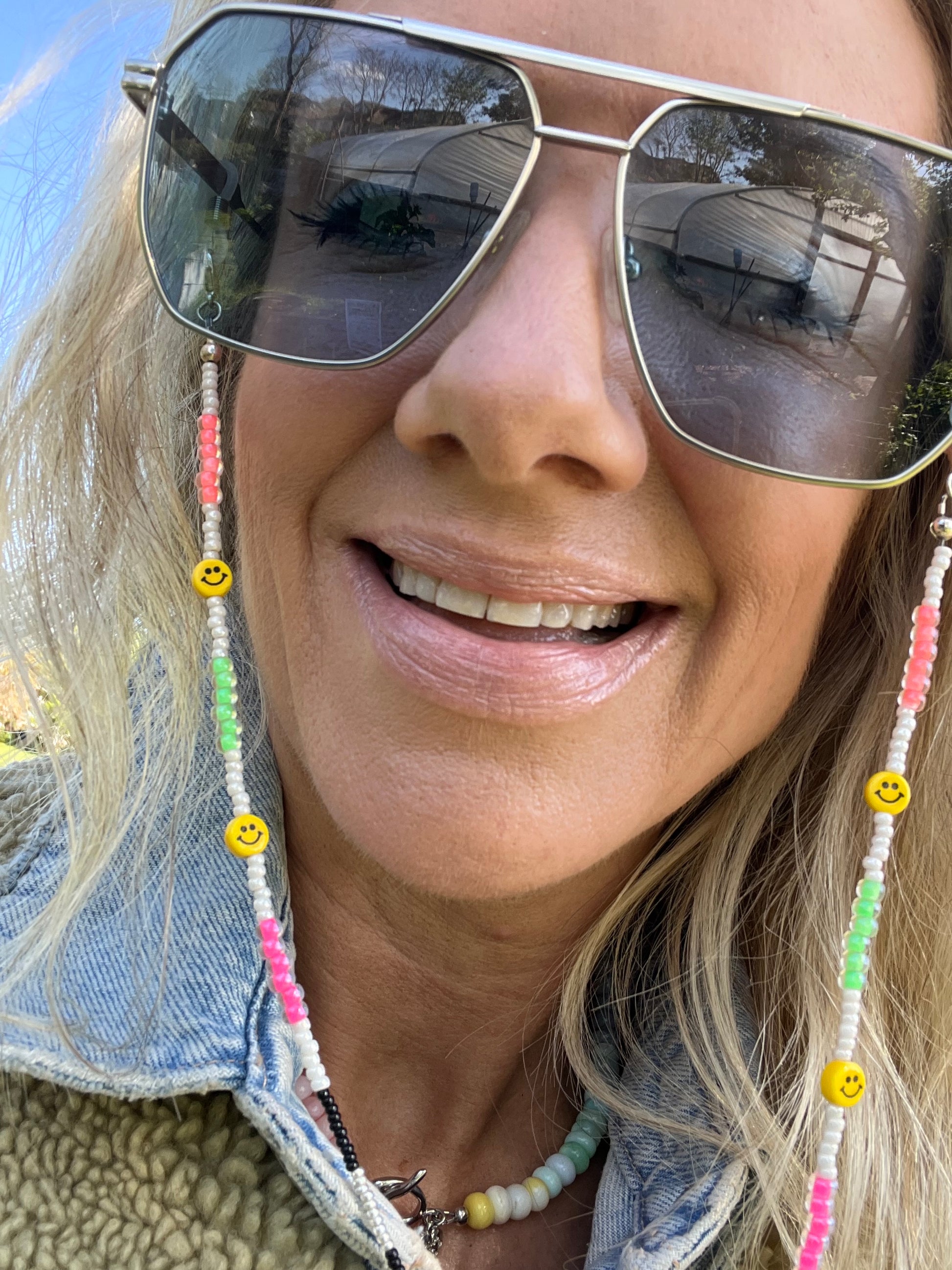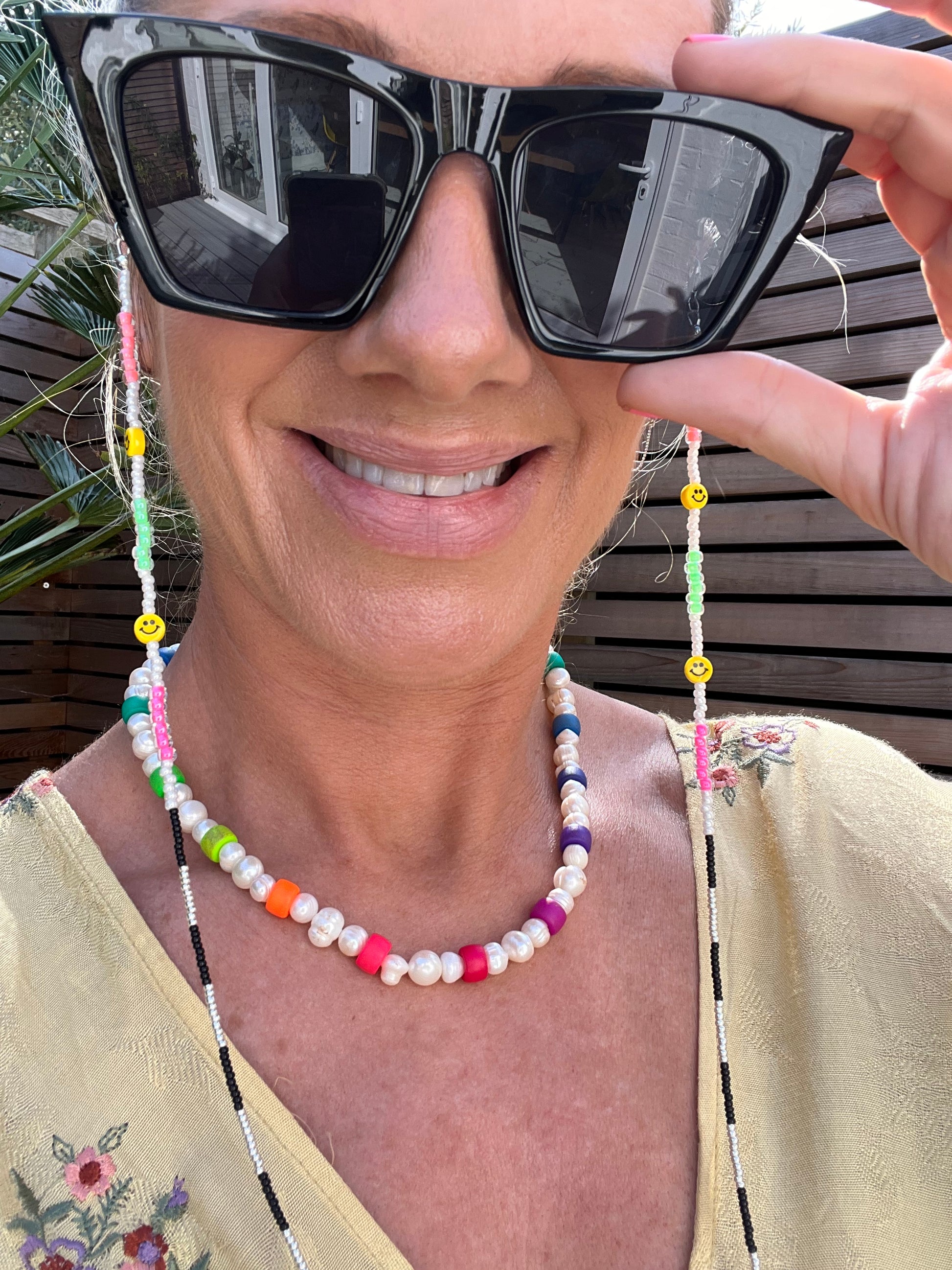 The Tiny Smiley Glasses Chain is more than a chain, it’s an absolute fashion statement 🌈😊