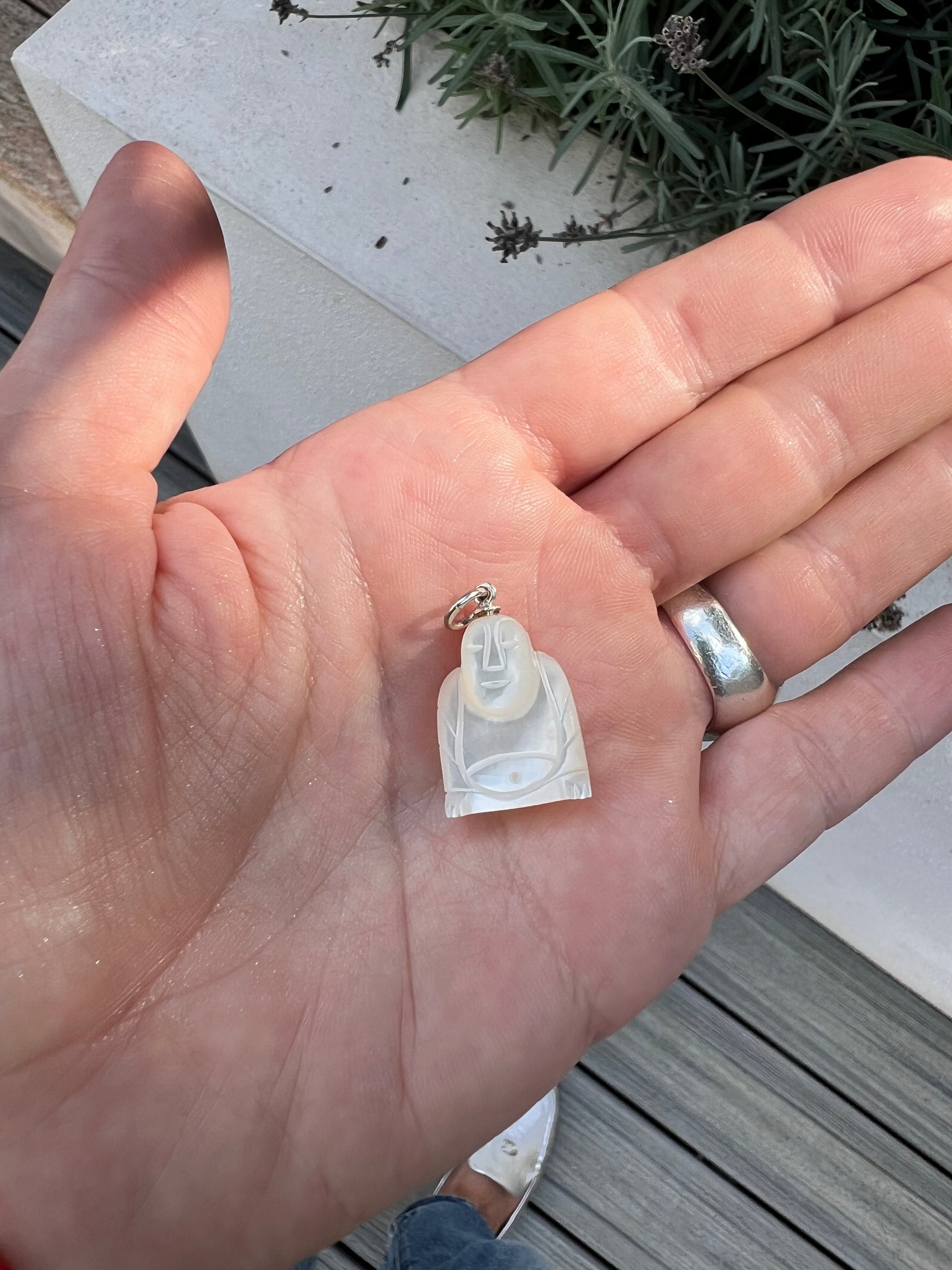 This beautiful Vintage Buddha Pendant is hand carved and made from Mother of Pearl.