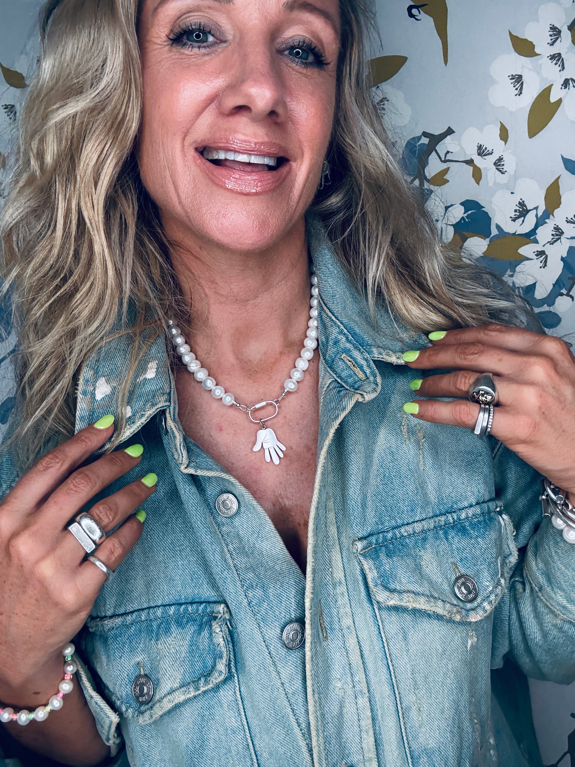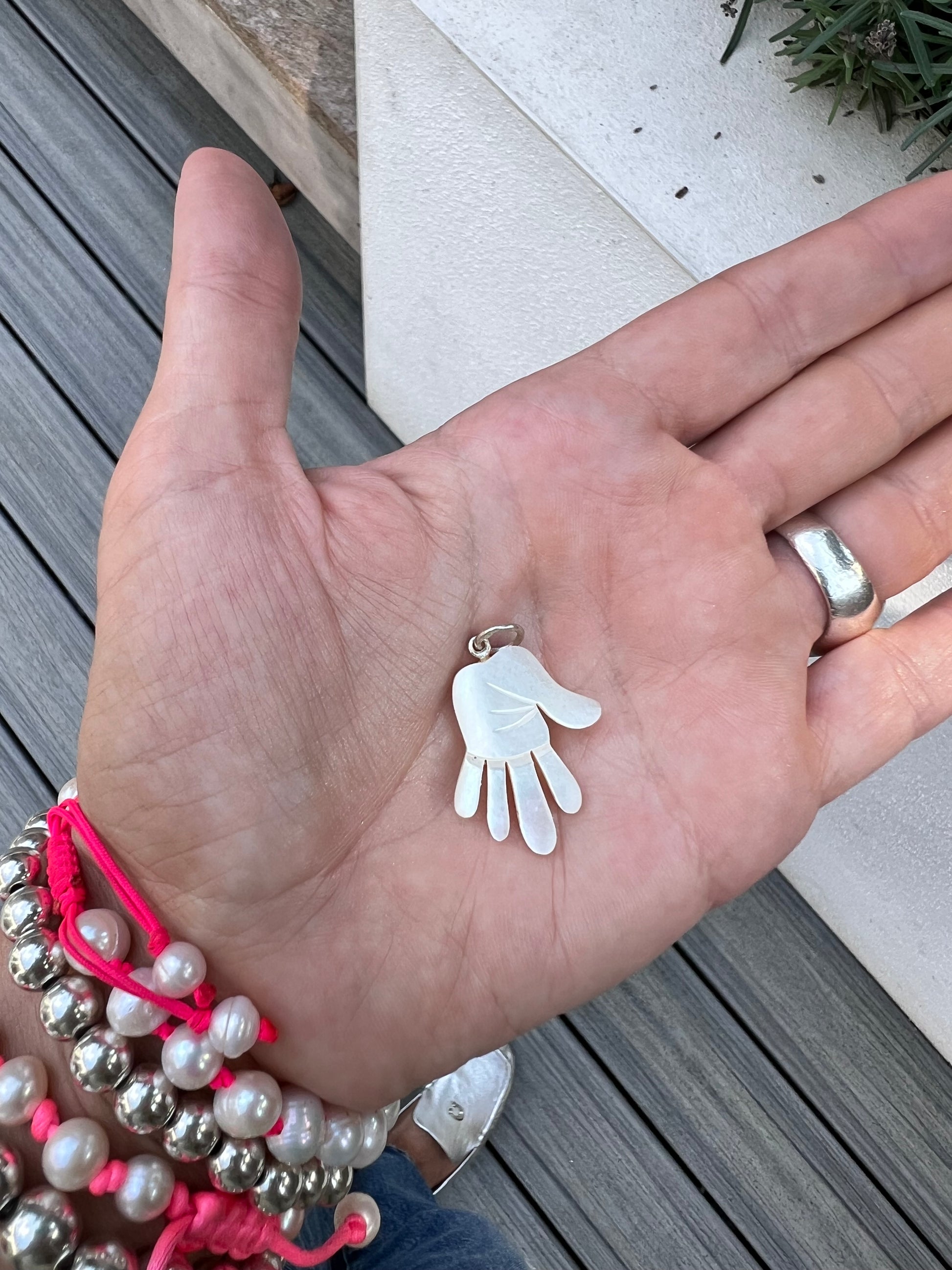 This beautiful Vintage Hand Pendant is hand carved and made from Mother of Pearl.